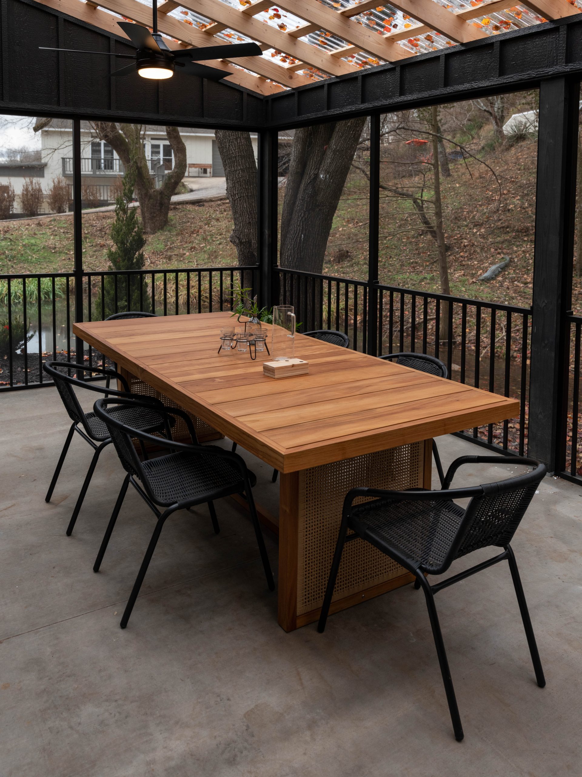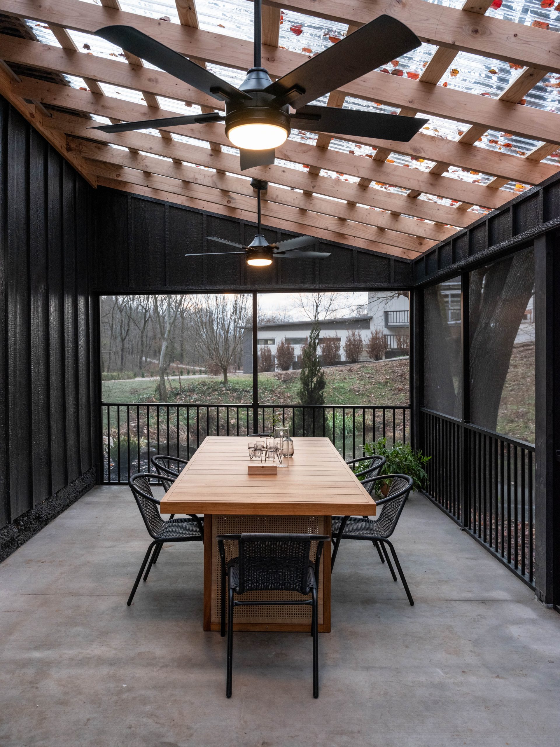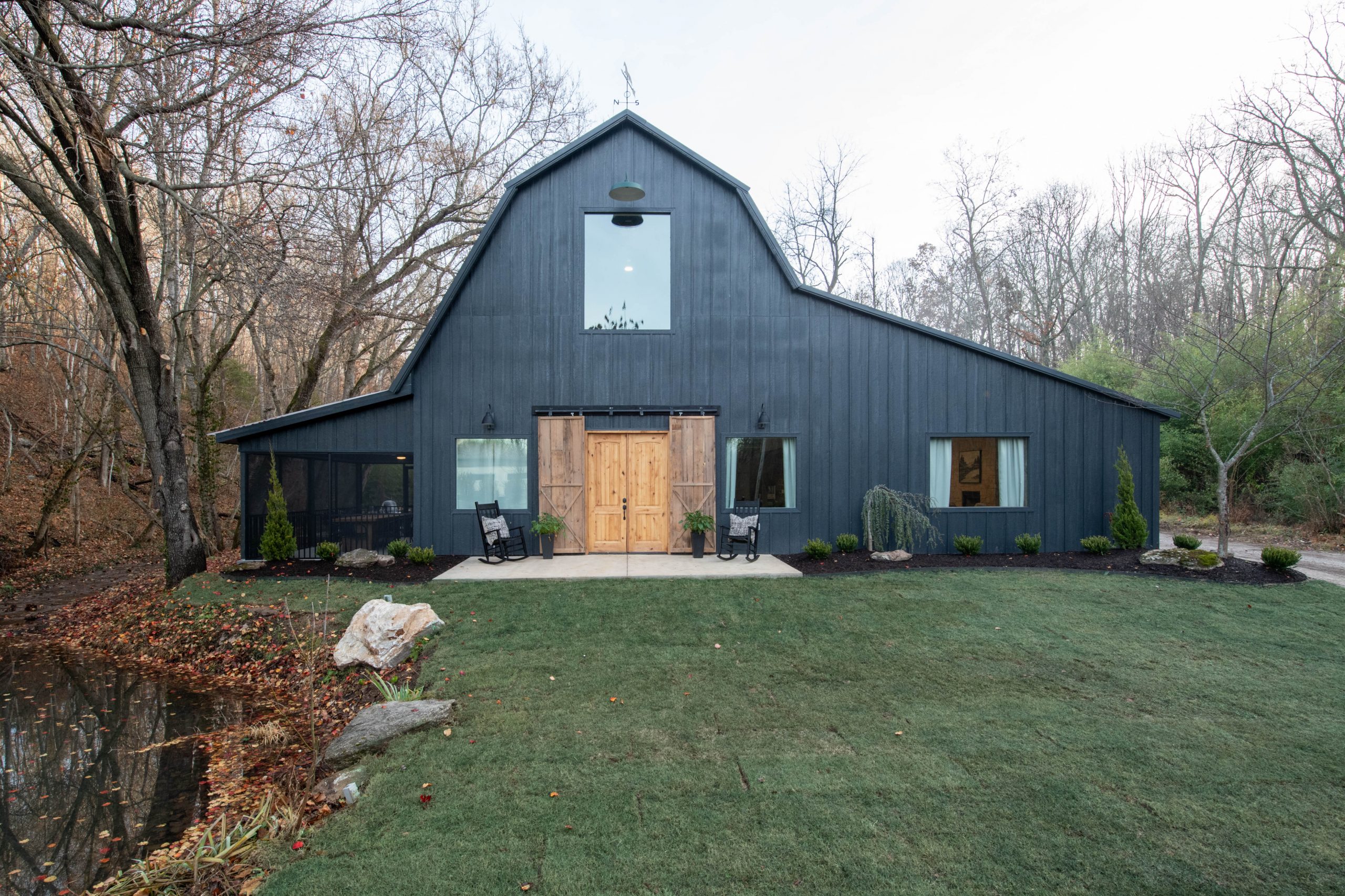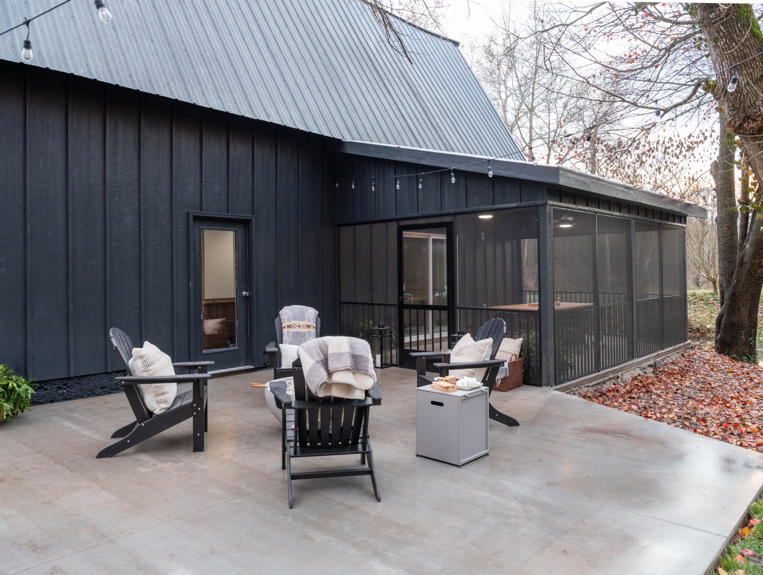 To finish off and perfect the modern-day barn look, we chose a dramatic black paint color, new lighting and an all-glass garage door.