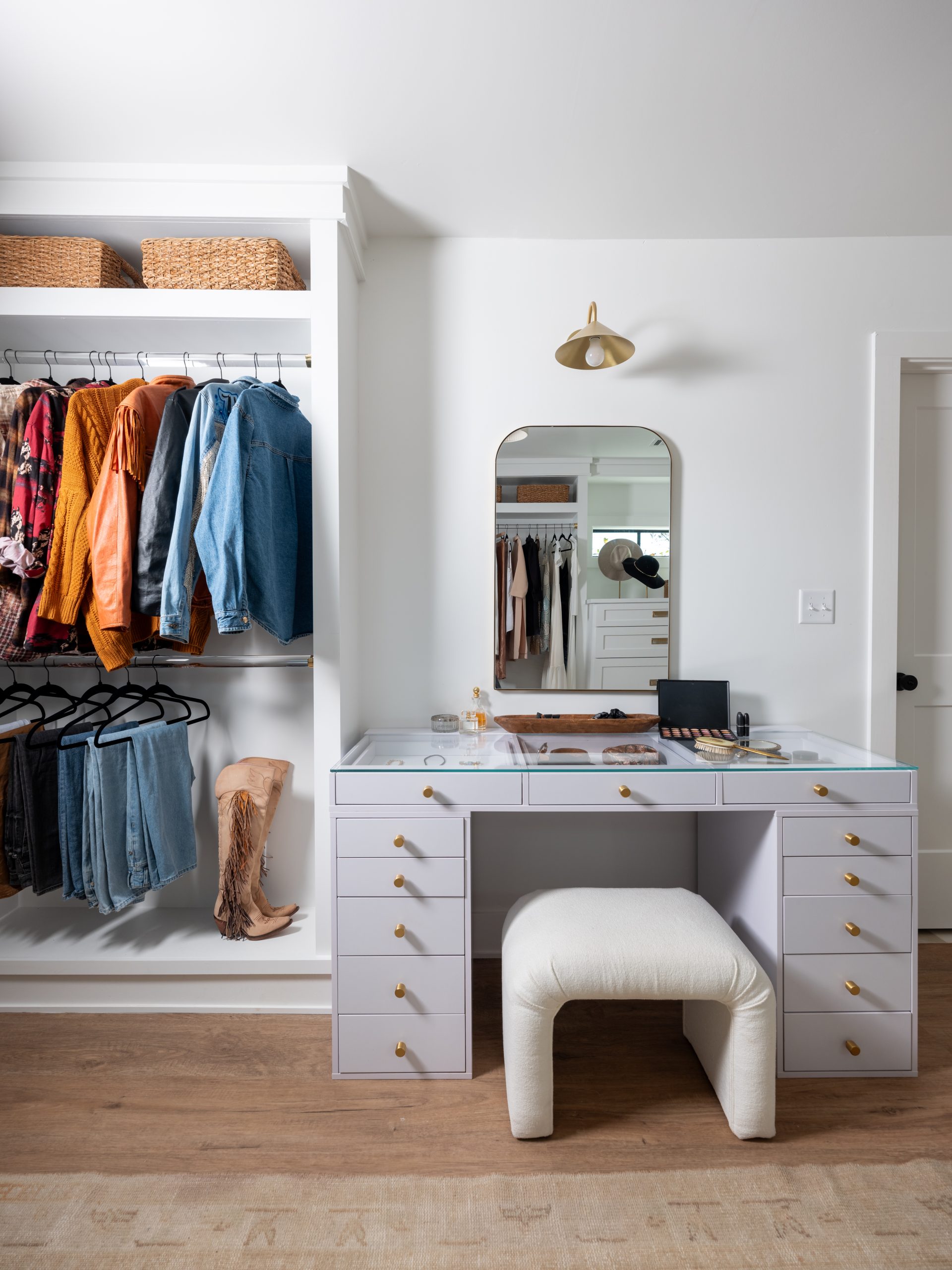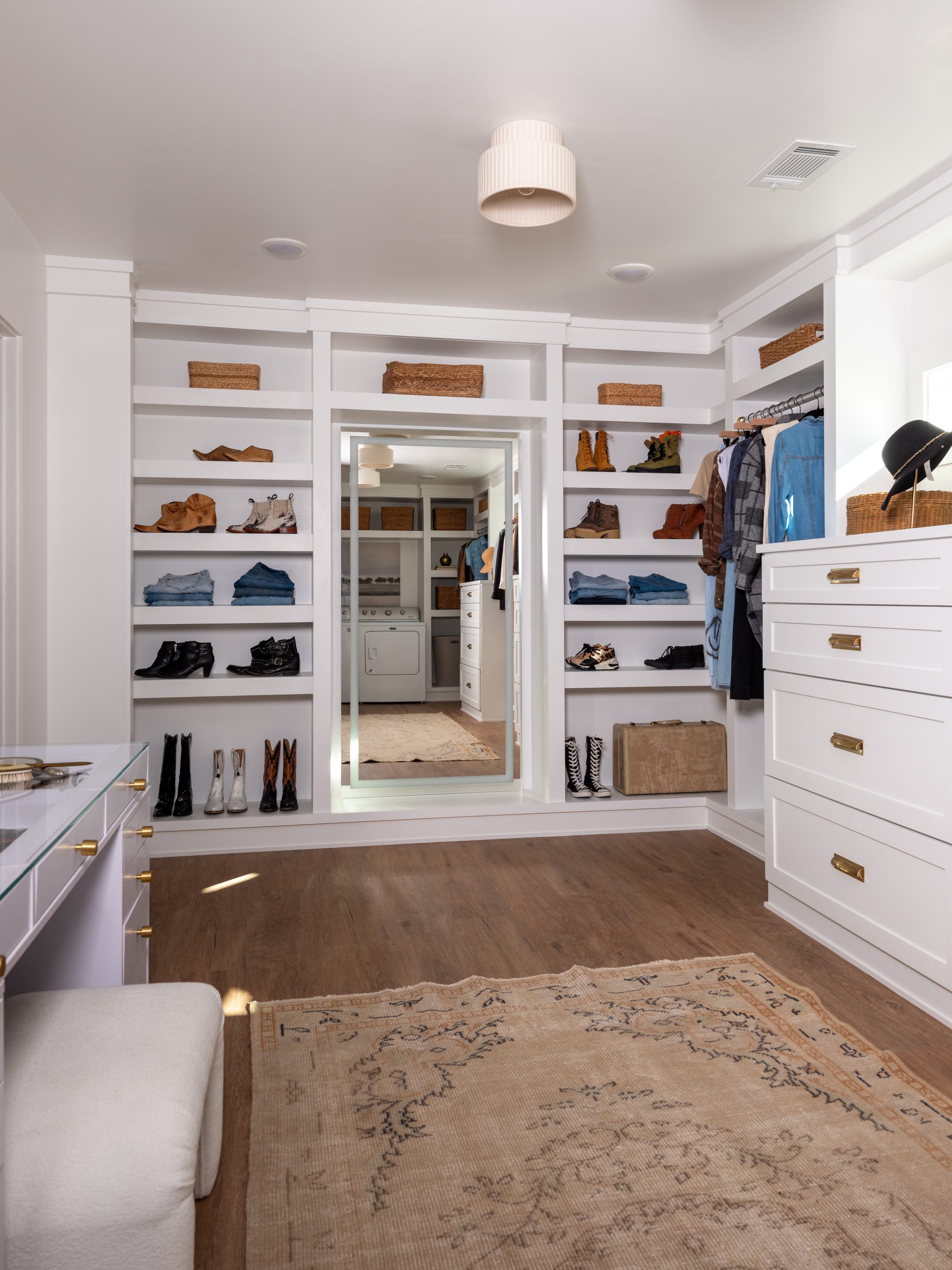 We had plenty of space to create a huge closet Gabby – even with enough room for a second washer and dryer. Gabby told us she’s a typical country singer with way too many clothes, shoes, hats and accessories, so we wanted to help her out with that! Now, there’s tons of storage here plus a vanity table and a full-length Hollywood-style mirror for her to get ready.
