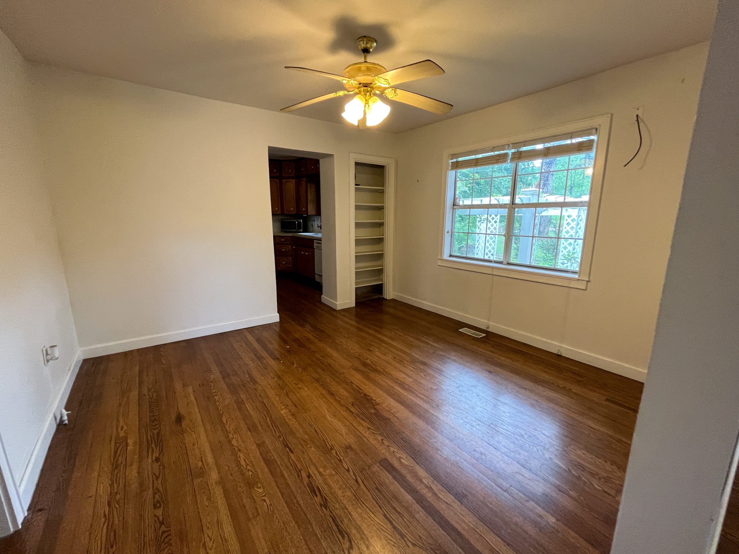 This area used to be the dining room and kitchen. We reworked the space in order to create a spacious and welcoming entry. Now when you walk in through the front door, you enter directly into the heart of the house. Through the hallway where the arched openings are (we didn’t show this on the show) are two guest rooms and a full bathroom which we also renovated.