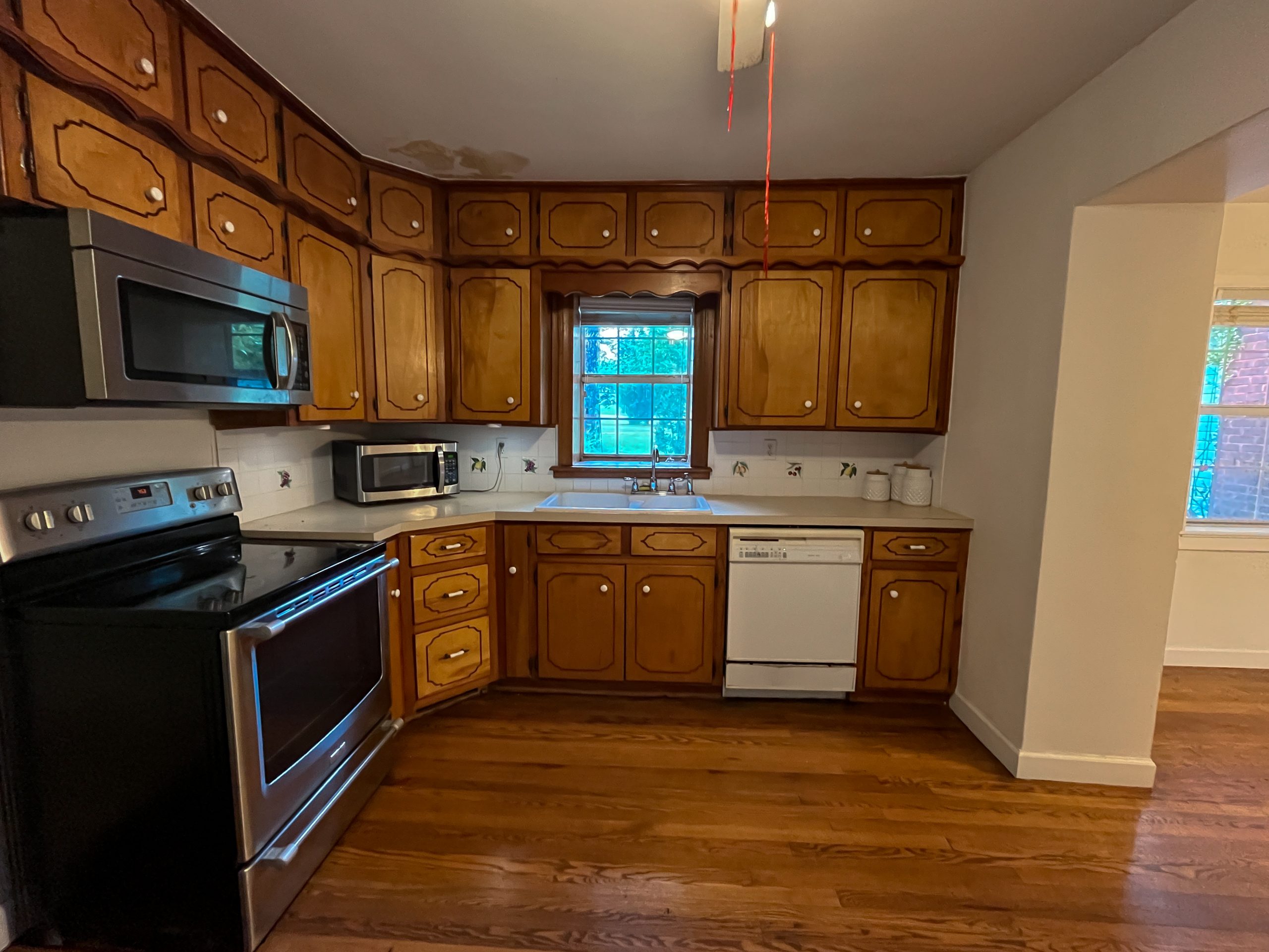 This part of the house used to be a carport and garage. We raised the ceiling and closed off the walls to turn it into a beautiful kitchen, dining and living room.