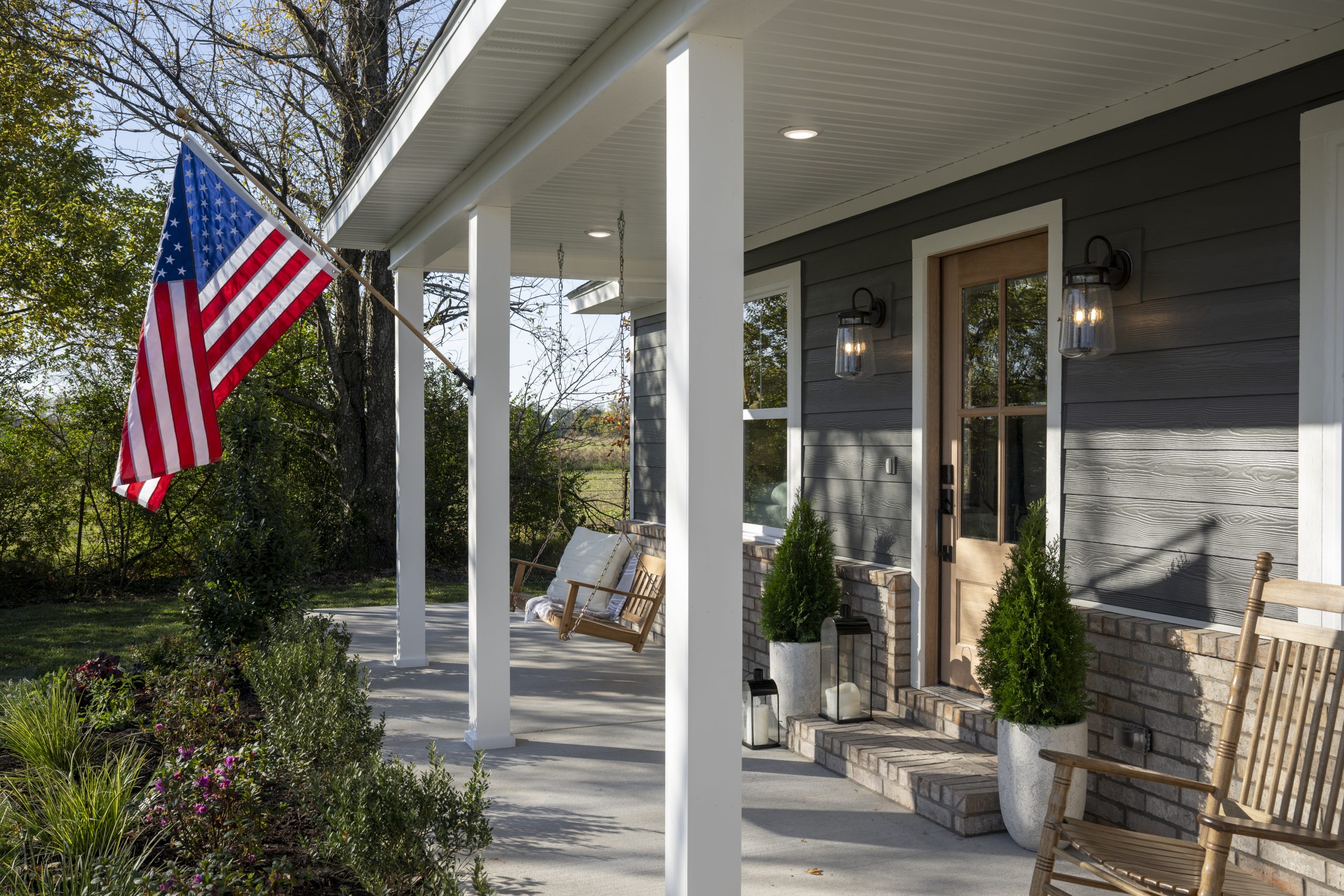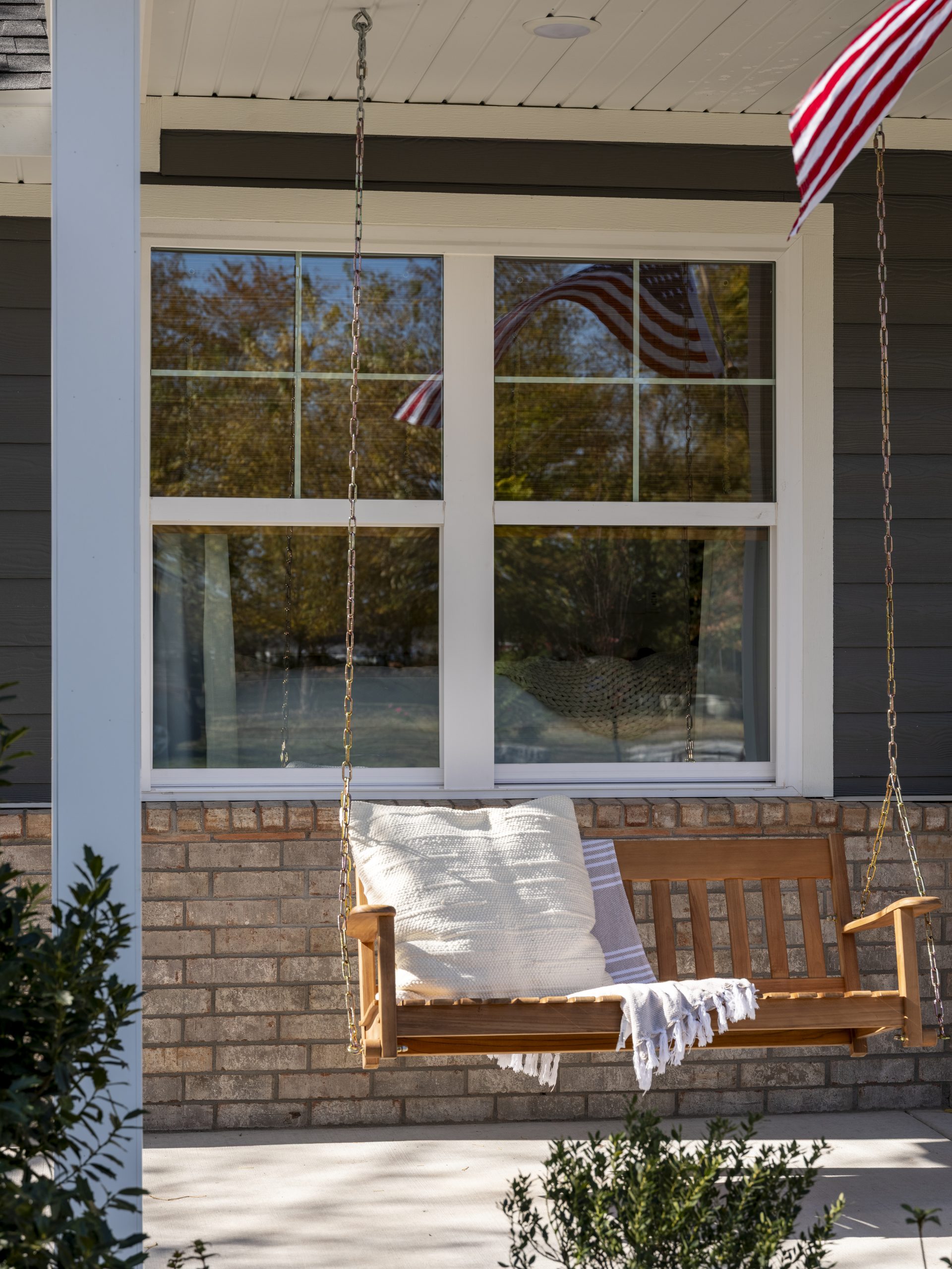 We added a classic front porch with rocking chairs and a swing. I can easily picture Amber sitting with her kids, enjoying the view of the new tree they planted together in the front yard. There’s plenty of room for Andrew to run and play and for Addie to practice soccer. The front steps include two special bricks—one with their names and another with the year the house was built. My hope is that these small, personal touches help this house feel even more like home for Amber and her kids.