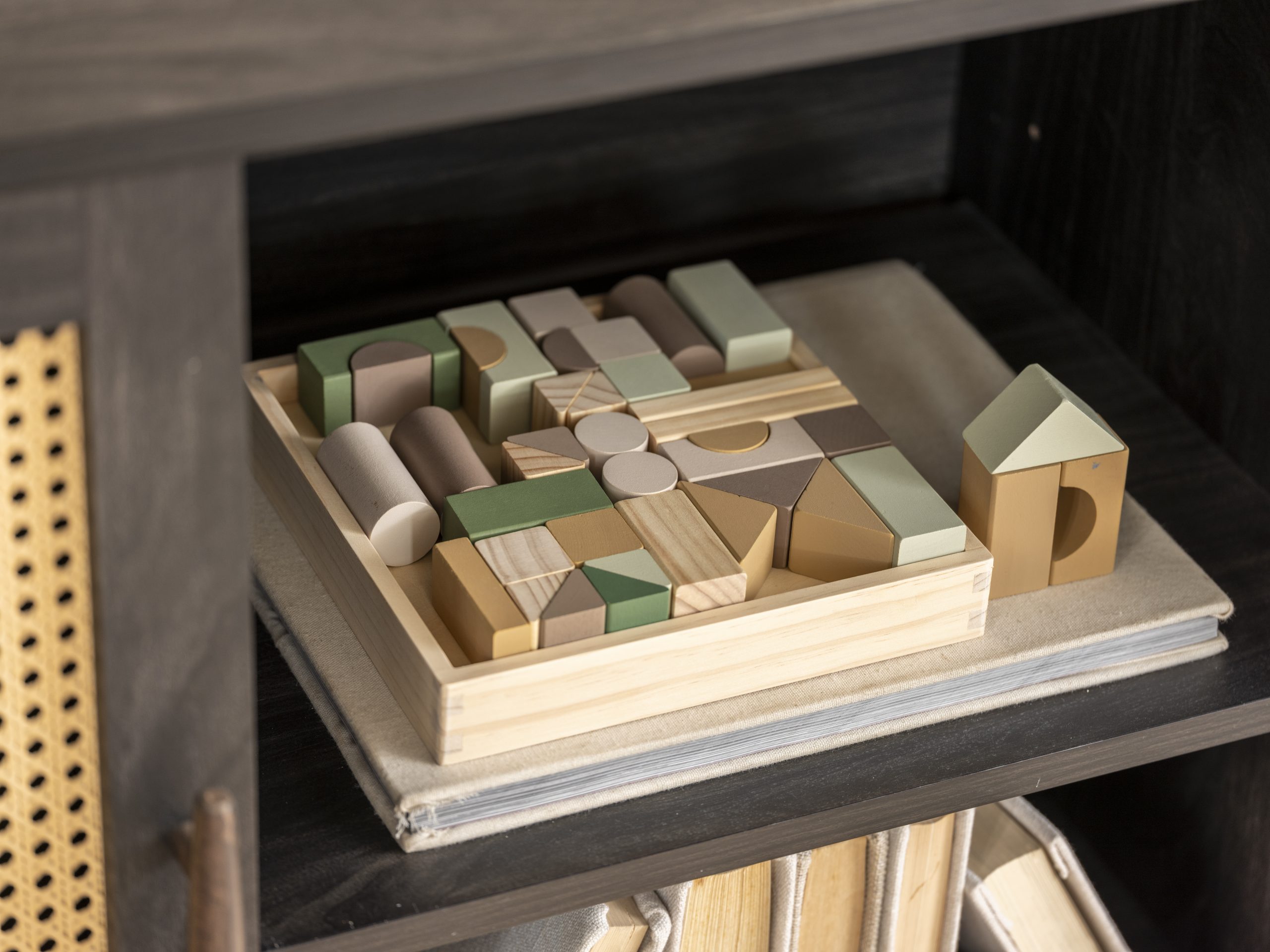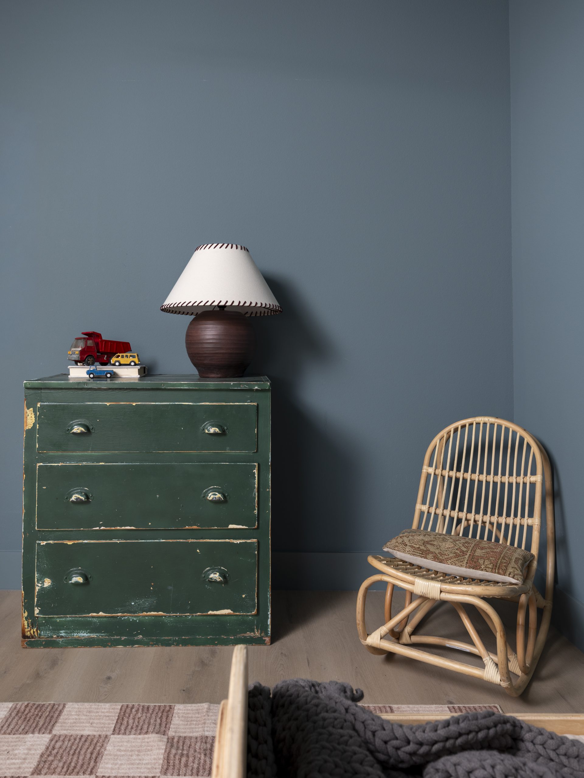 Like most little boys his age, Andrew loves cars. Dave made a one-of-a-kind car bed just for him, which became the centerpiece of the room. We painted the walls a darker shade to create contrast with the lighter, natural elements throughout the space, giving the room a cozy feel that still feels playful and fun.