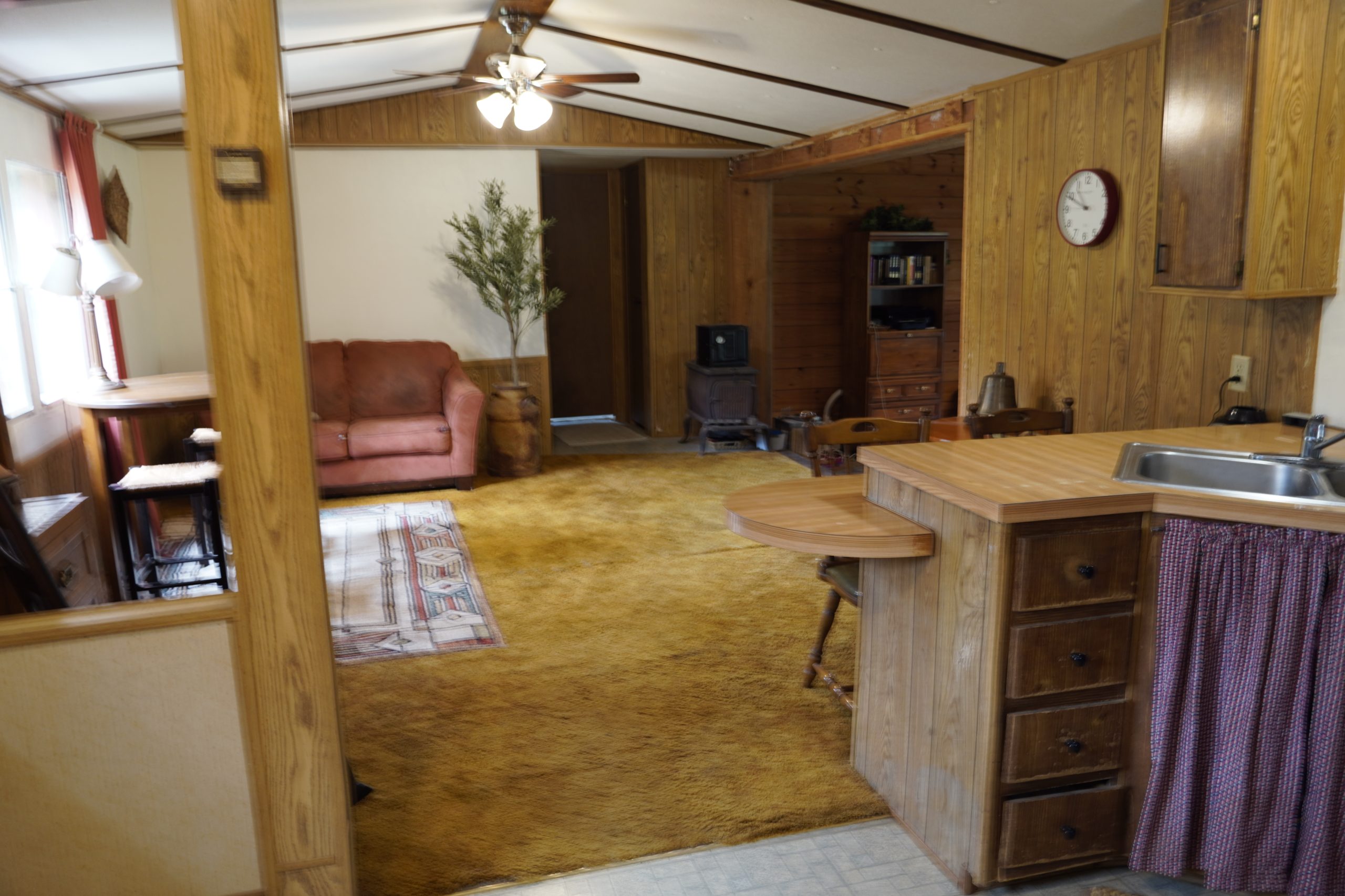 After years of working on renovations, we have seen all kinds of homes, but this old cabin–train station–built-around-a-trailer home is easily one of the most unique we’ve ever taken on. Built from materials salvaged from an old Neosho train depot, the house was constructed to fully surround a trailer home.