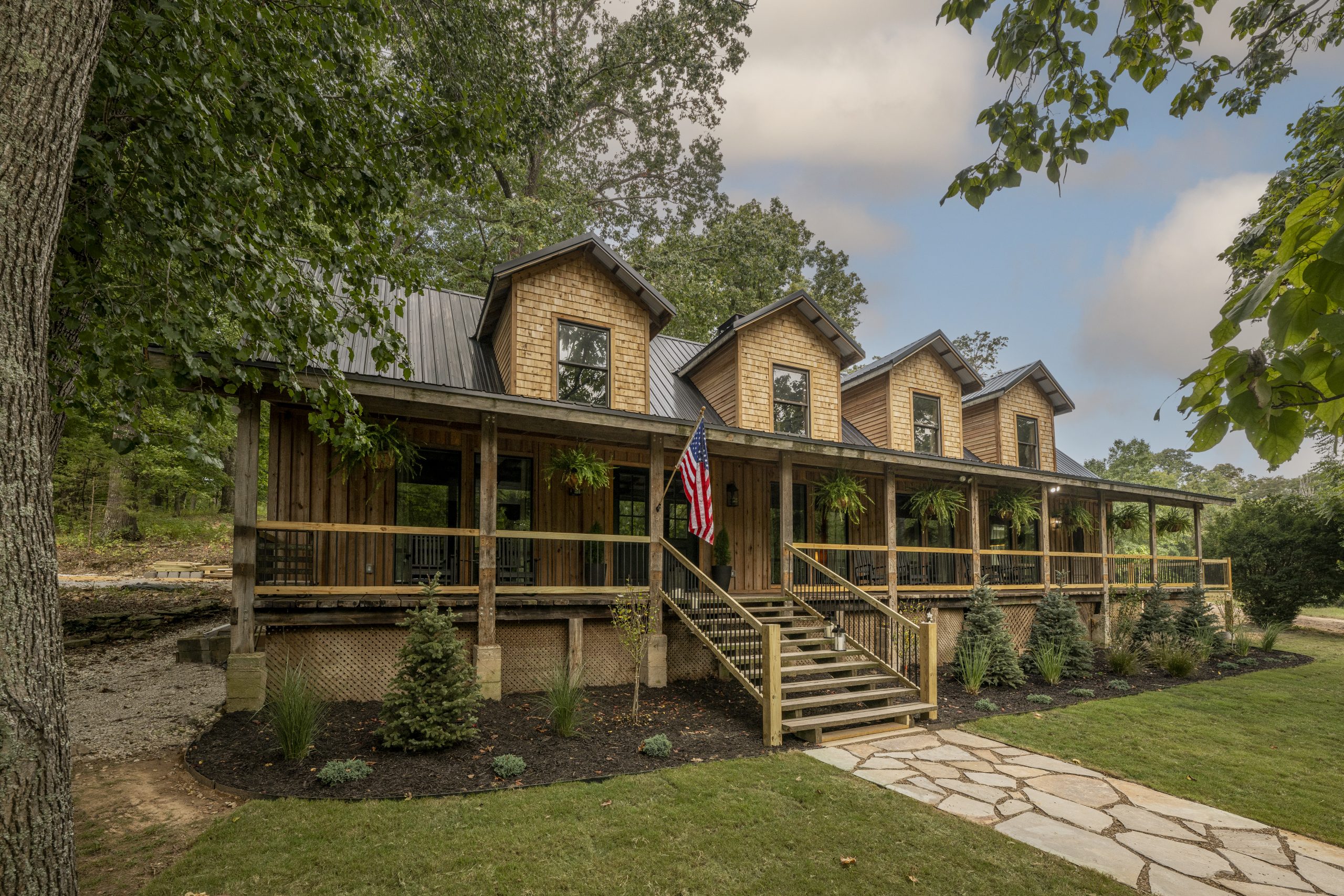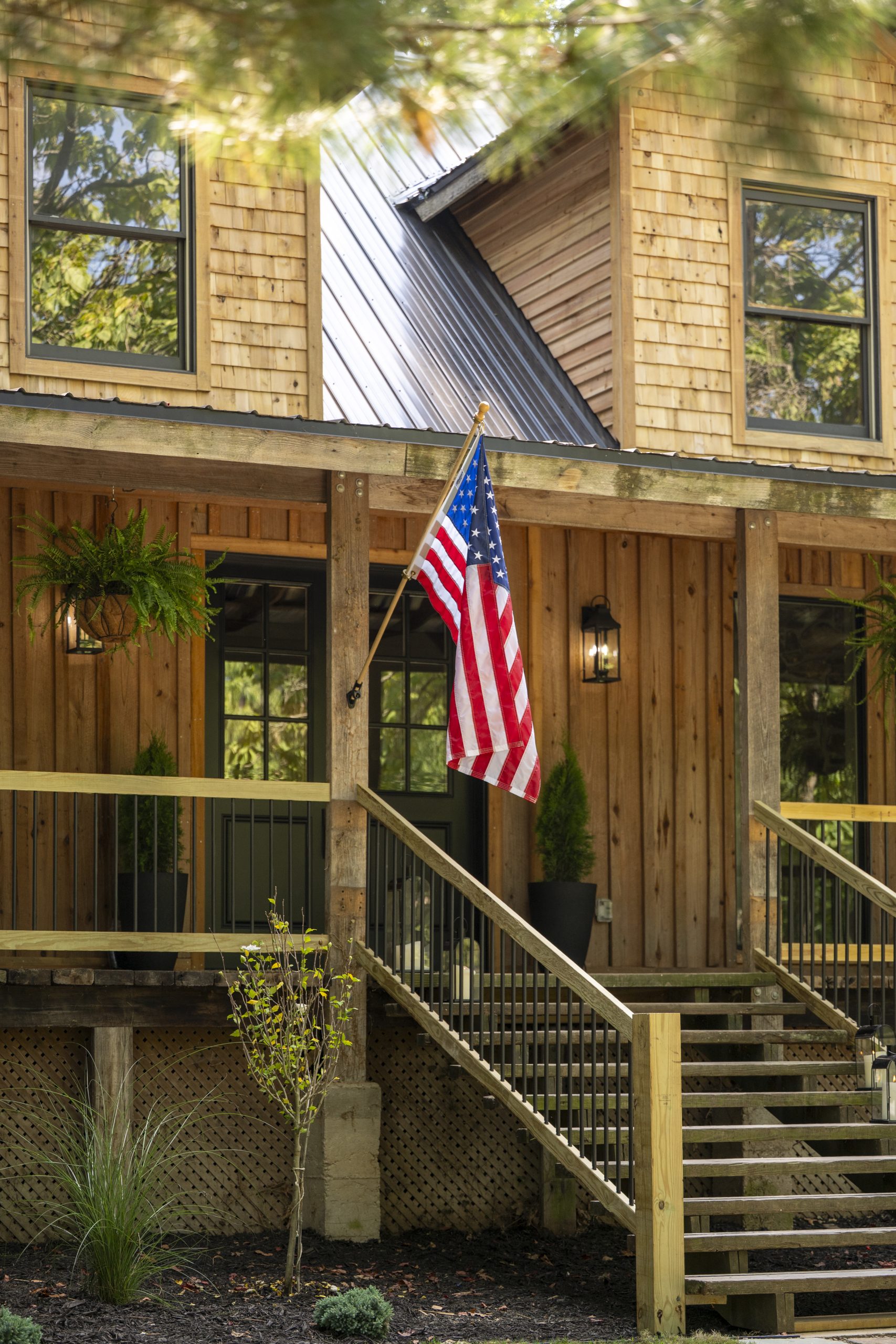 With its original cedar and large front porch, the house already had a wonderfully authentic, cabin-in-the-woods feel. It simply needed a refresh, including cedar shake on the dormers and new handrail.