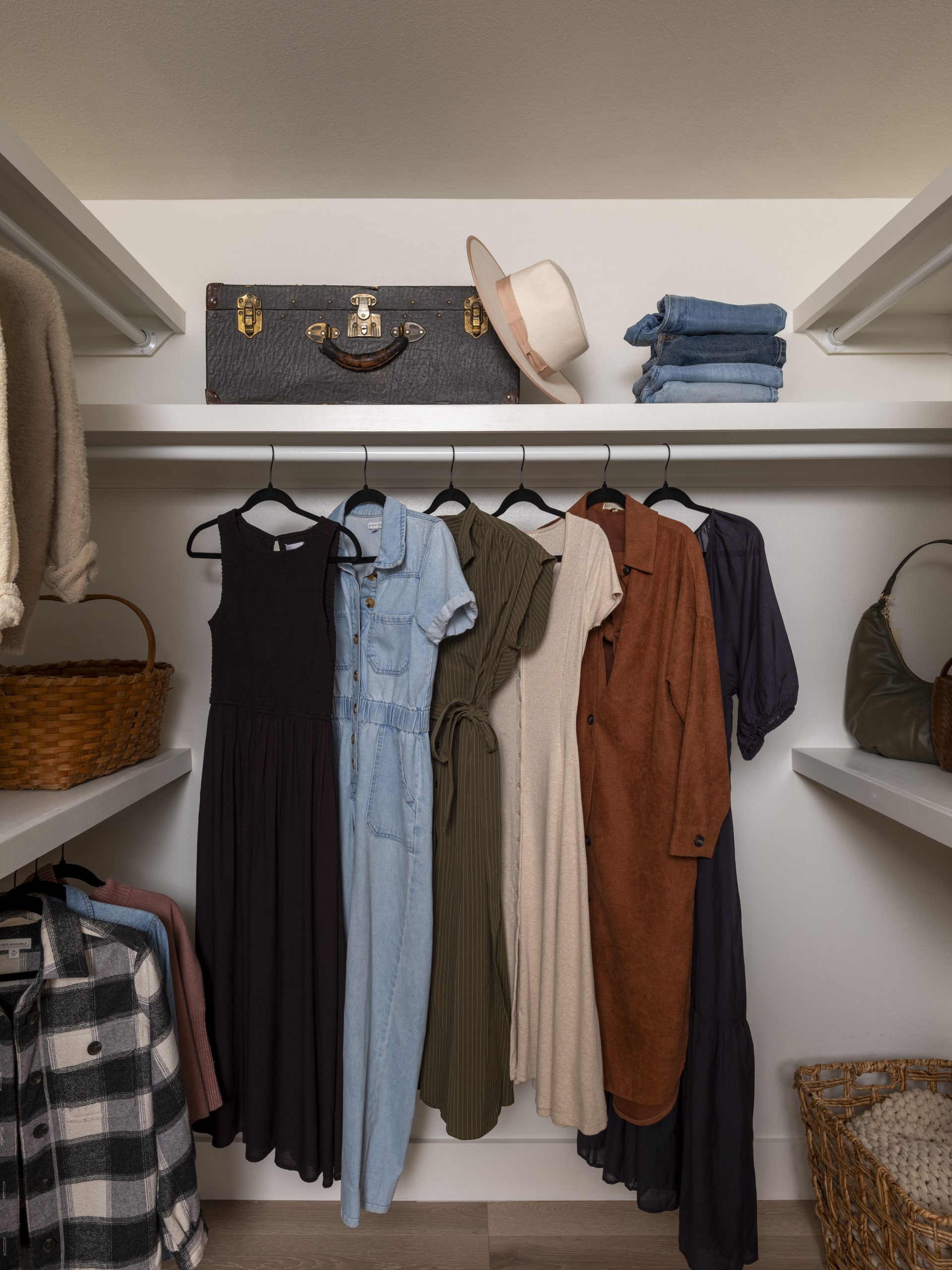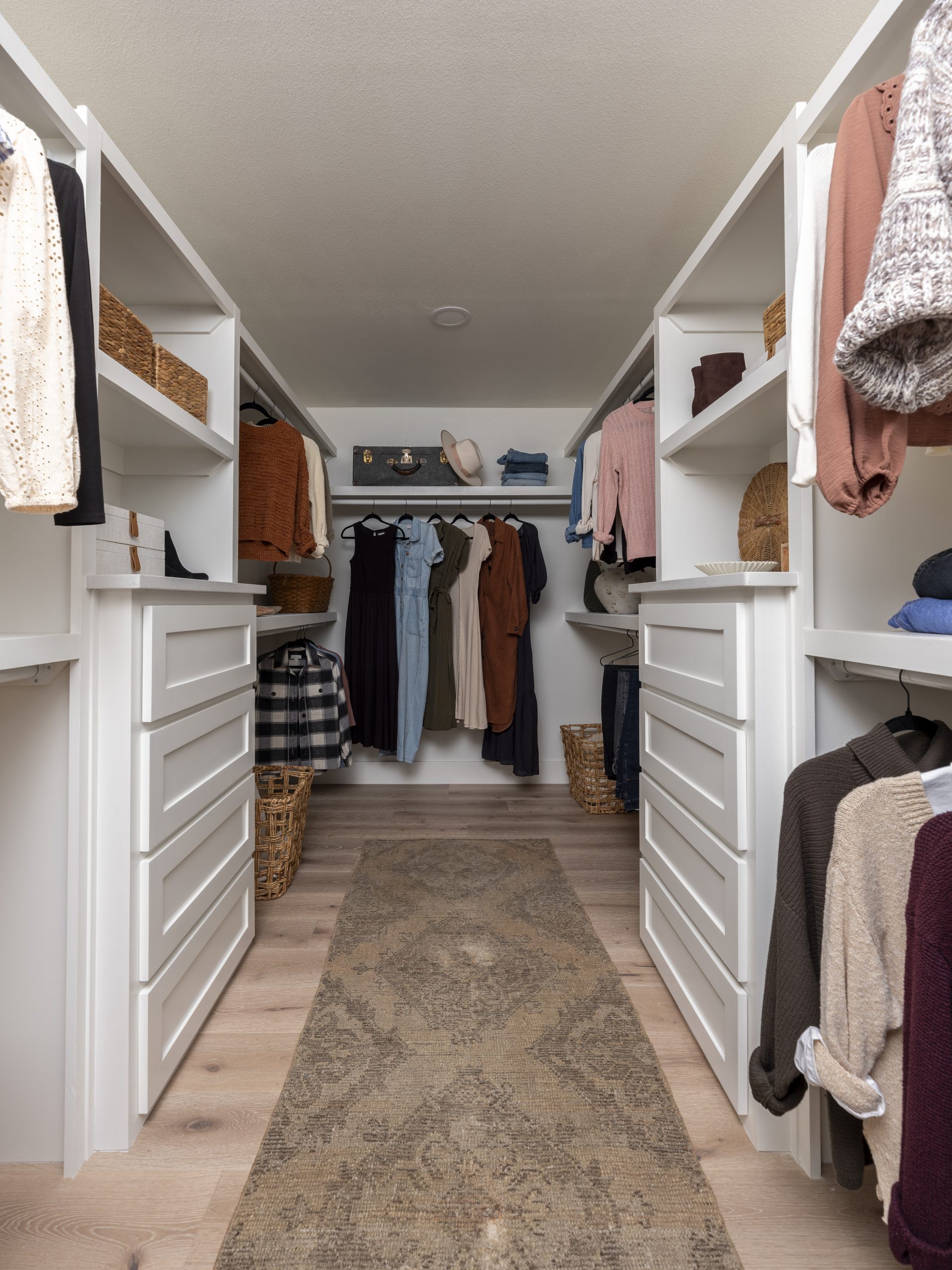 The bedroom had a strange layout where you had to walk through the closet to reach the bed, which made the space feel awkward and closed off. We moved the bedroom entrance to a different wall to create better flow. By closing off the walk-through closet, we were able to give Debbie a much larger and more functional closet.