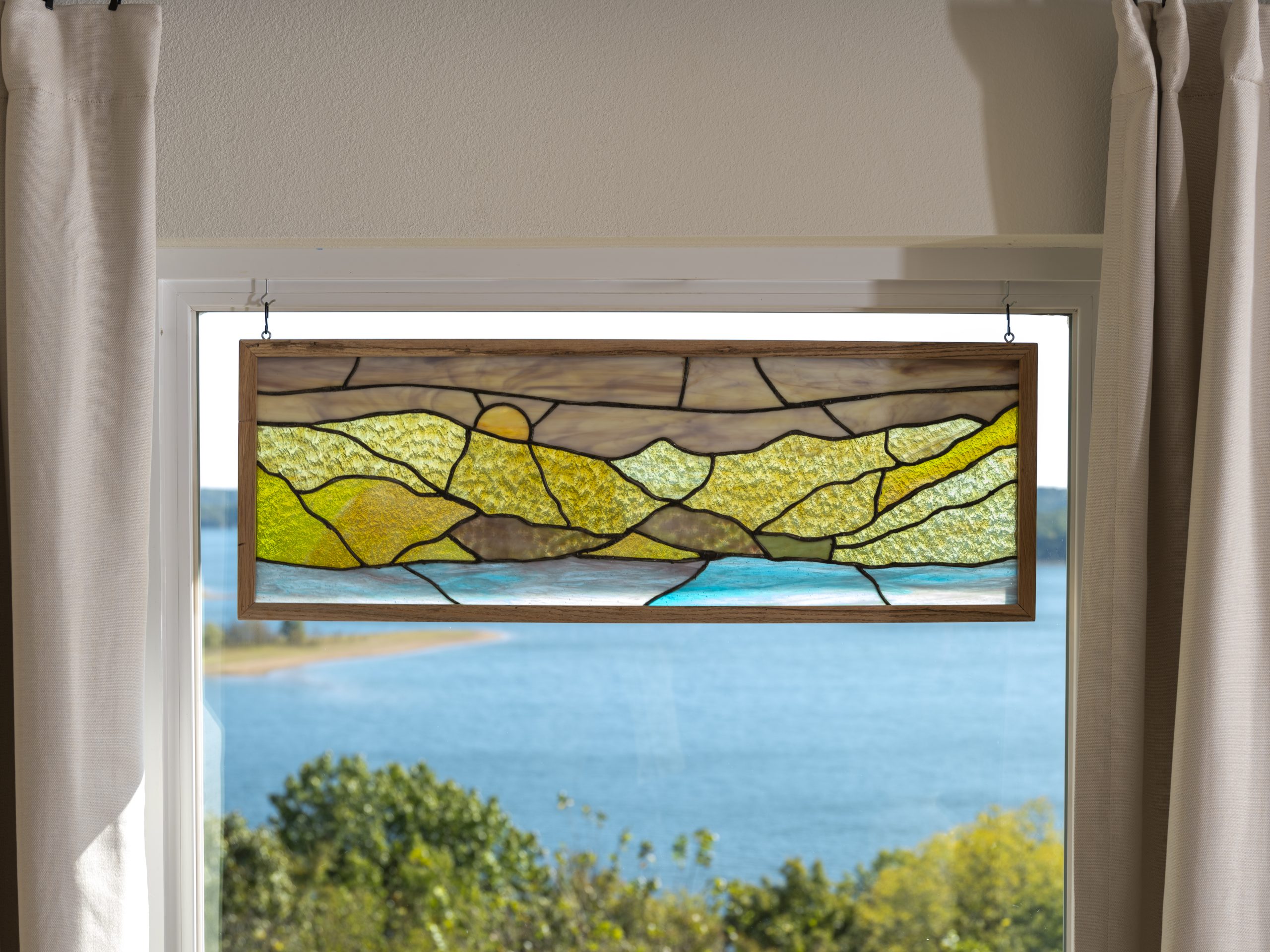 Dave and I also wanted to do something meaningful to honor Greg, so we came up with the idea for Dave to create a custom stained glass piece. We visited a local stained glass shop together and selected individual pieces for him to set into a peaceful landscape design. My hope was that it would bring a sense of calm and serve as a beautiful reminder of what matters most.
