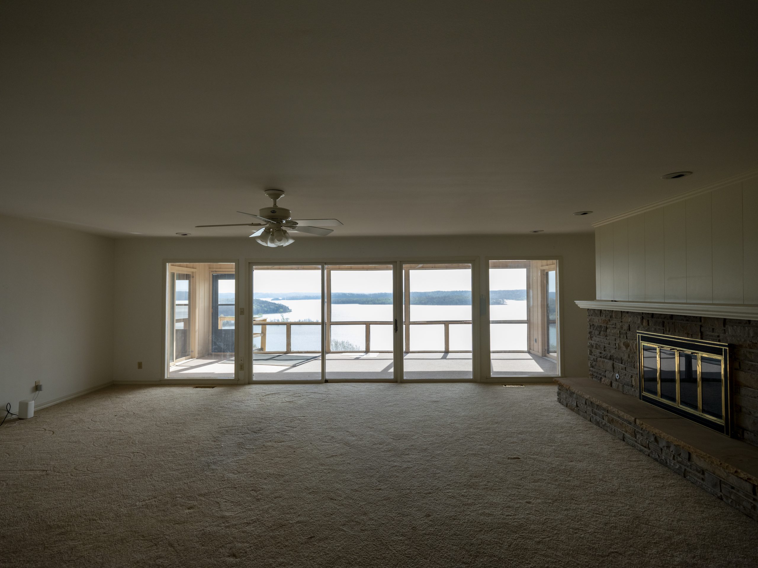 This room felt very outdated, and the screened-in back porch was blocking the beautiful lake view from the main part of the house. We tore down the wall that separated the two spaces so we could bring that magnificent view right into the living room.