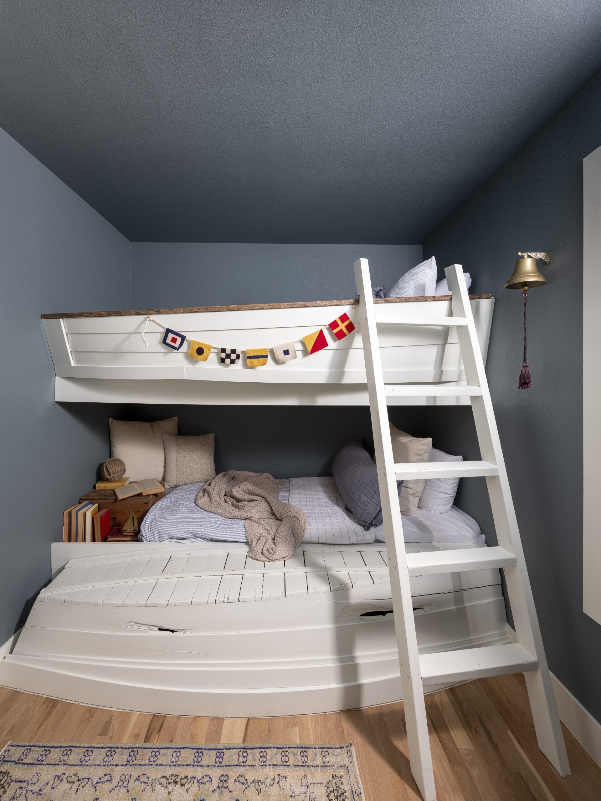 This was a large cedar closet that Rick and Lisa wanted to convert into a bunkroom. Our own Kim from our design team had a special connection we couldn’t pass up. Kim’s parents had a marina where we were able to snag these old row boats. Dave converted them into fun bunk beds where kids can sleep when they visit. They turned out so great and are the perfect detail to really bring home the lake house feel.