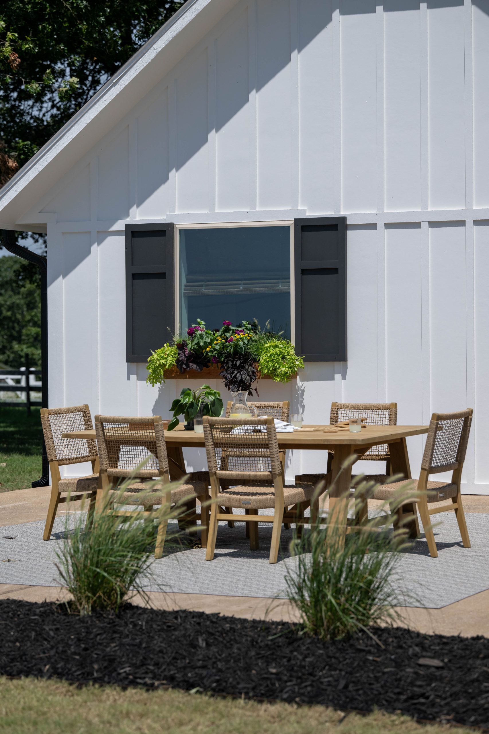When you pull up to this house now, it looks like a completely different house. It’s so much brighter and happier. We made a few changes that made a huge difference. First, we adjusted the slope of the roof along the left side of the house to make it more symmetrical. This is where the garage had been, which we removed to make room for a master suite, mudroom and laundry room. We removed the garage doors and closed off the wall where the garage had been. They have plenty of room to park behind the house. The old driveway became the perfect spot to add an outdoor sitting area where the family can sit or run around and play in their large front yard.