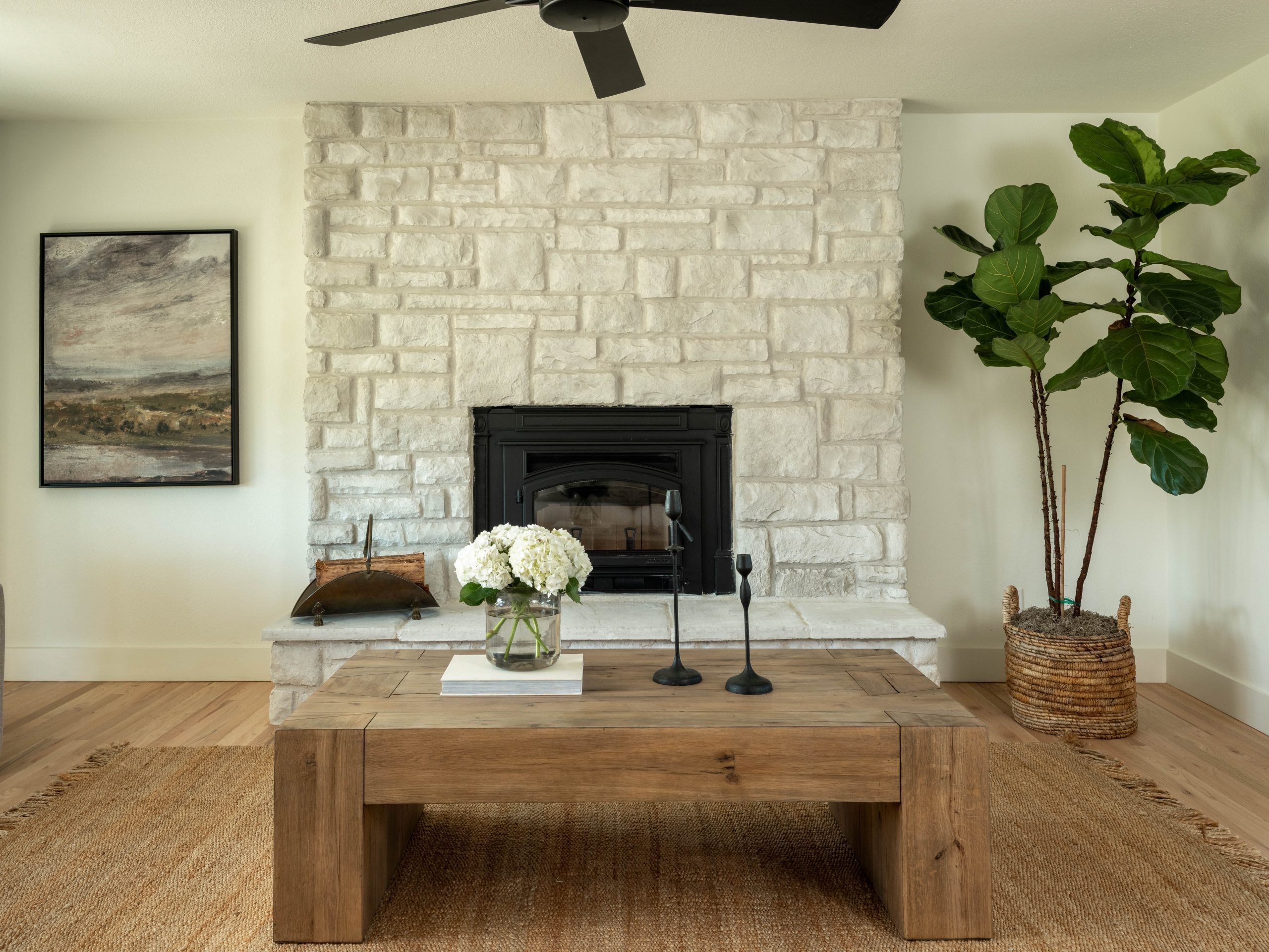The fireplace in this room was probably our biggest challenge. We had originally thought to remove the huge, outdated fireplace and turn it into an alcove with a small wood burning stove, but that didn’t work out. Instead, we went with plan B and made it into a classic, homey fireplace that is still big, but better fits the style of this updated house. I love when plan B works out to be better than the original plan!