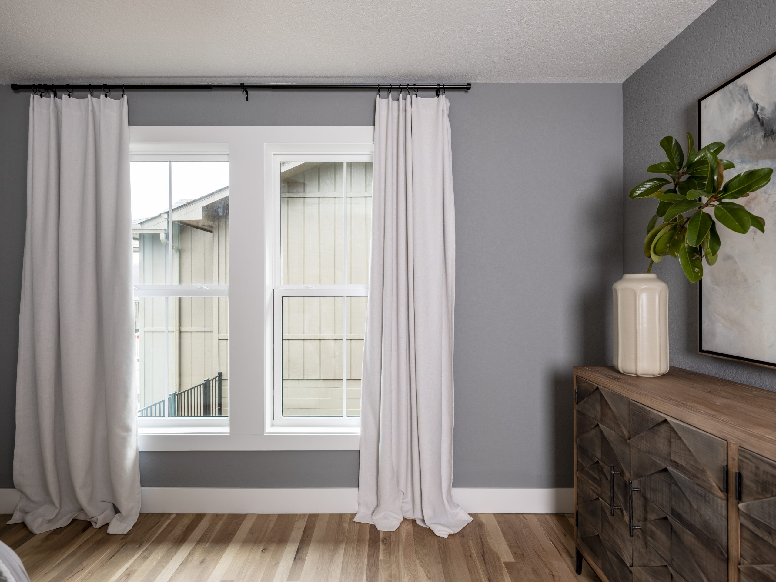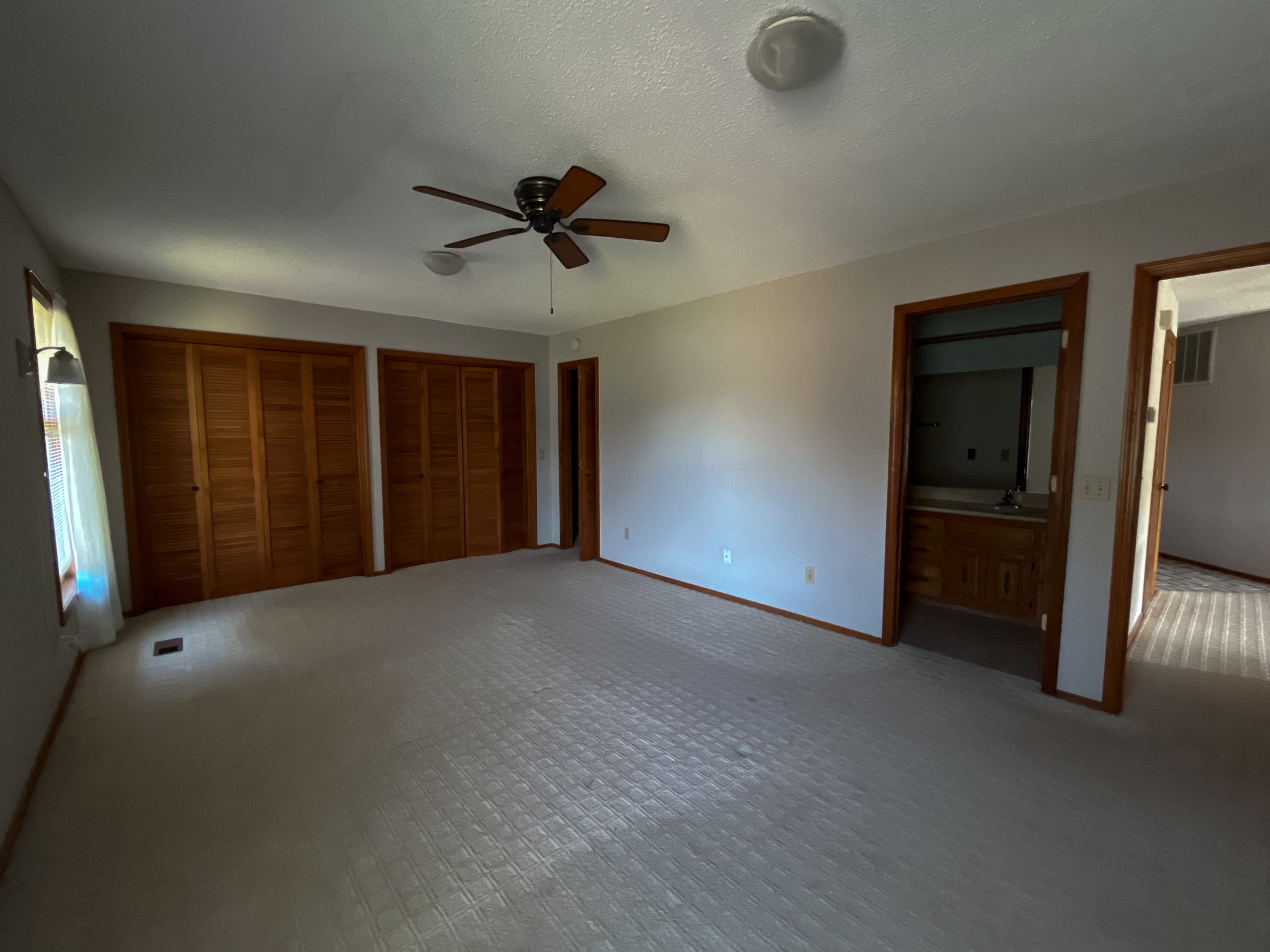 Like the rest of the house, this room looked decades several decades old. We updated the window trim, scraped the popcorn ceiling and installed new lighting, a new ceiling fan and new flooring. We also divided the room in two to give Uncle Bob and Jill a large closet. Then, we painted the walls a nice calming shade of blue. Since the entrance to the room was changed to a different wall, the room also got a new entry door along with the new closet doors.