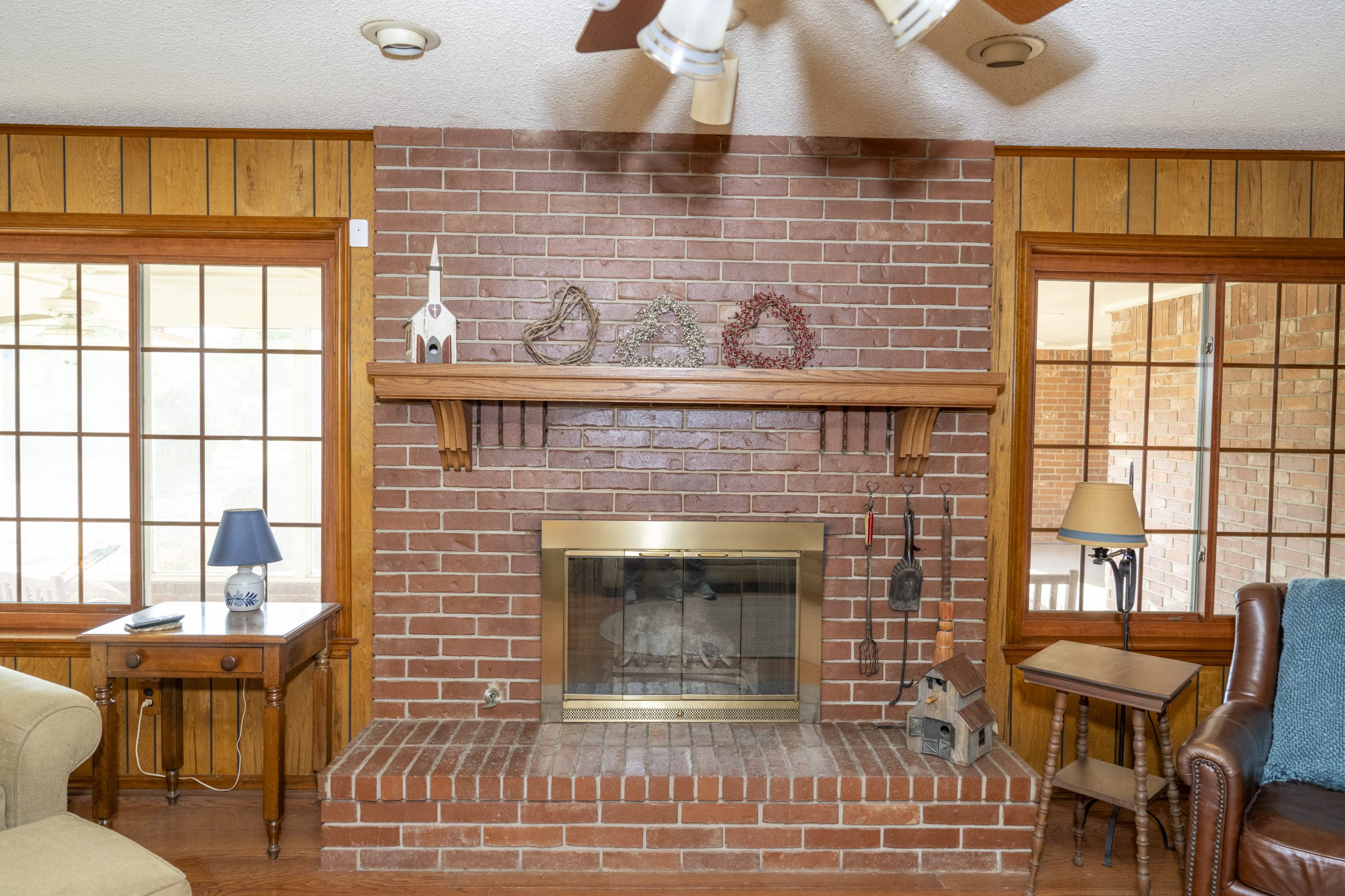 The house had a formal living room and a family room separated by a wall, making the house feel choppy. Both rooms were outdated with paneling and an old brick fireplace. Shelly wanted to take down the wall and combine the two rooms to make one large family room.