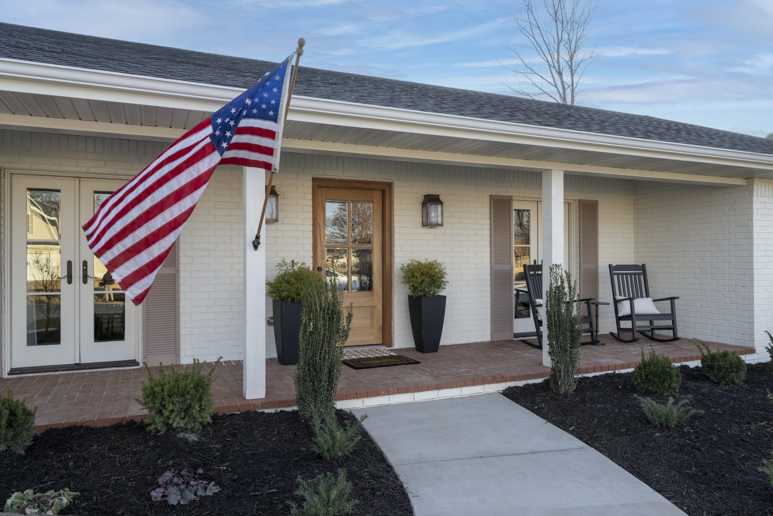 The house had been struck by a large tree during a strong tornado, and the roof needed to be replaced. Our goal was to give this house a charming Southern feel. We started by centering the front door and reworking the walkway to create a more inviting entry. We liked the original brick, but after the storm damage, it was impossible to find an exact match so we added newer brick and painted it all with a coat of classic white.