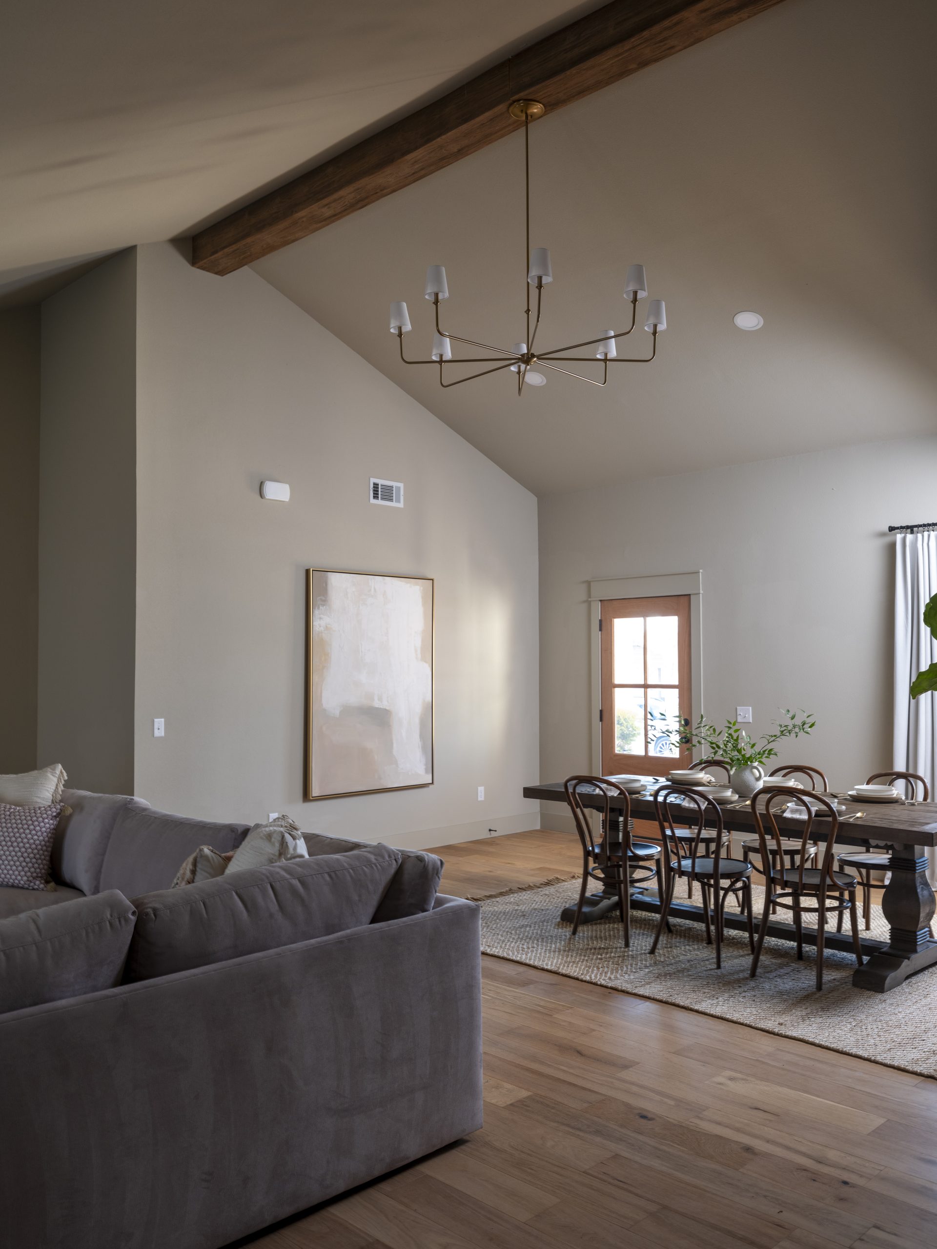 The tornado left the roof in such rough shape that we had to start fresh—which turned out to be a blessing in disguise. It gave us the perfect opportunity to vault the ceiling, adding so much more openness and light to the space. Since we didn’t need a structural beam, we saved a little money by using a faux one instead, and the result is just as beautiful. Now, instead of two cramped rooms, we have one expansive living space that feels airy and welcoming.