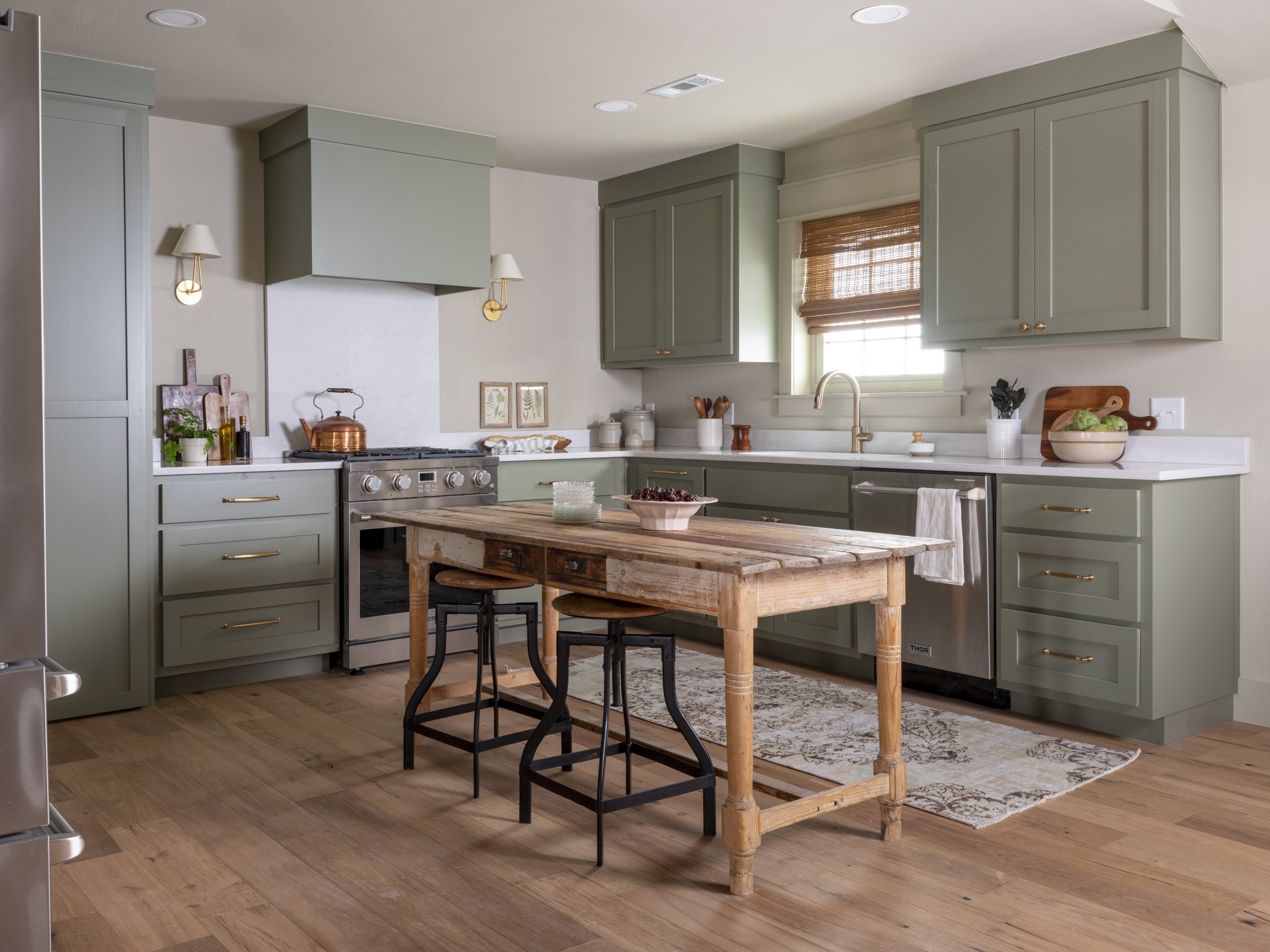 Since the rest of the home features beautiful greens and blues, we wanted to carry that same color palette into the kitchen to keep everything feeling cohesive. We also kept the same warm wood flooring to create a seamless flow from room to room.