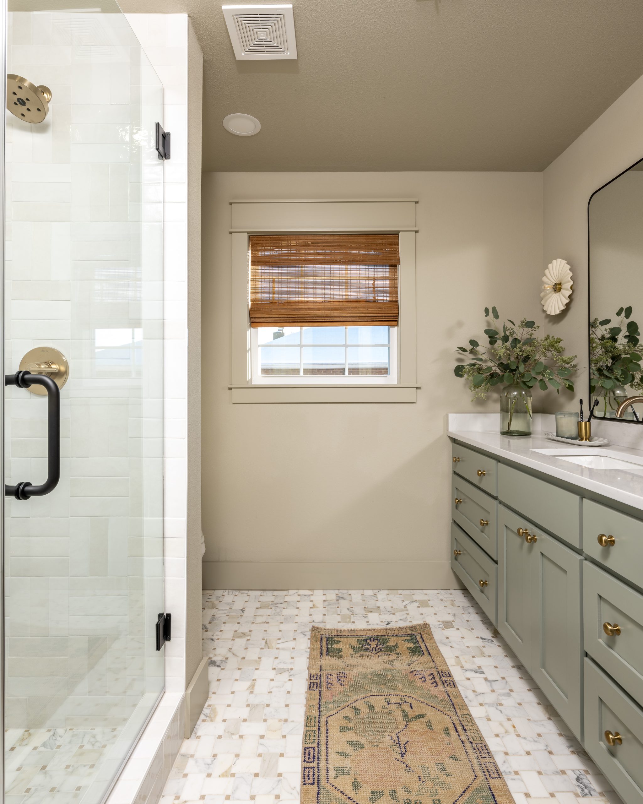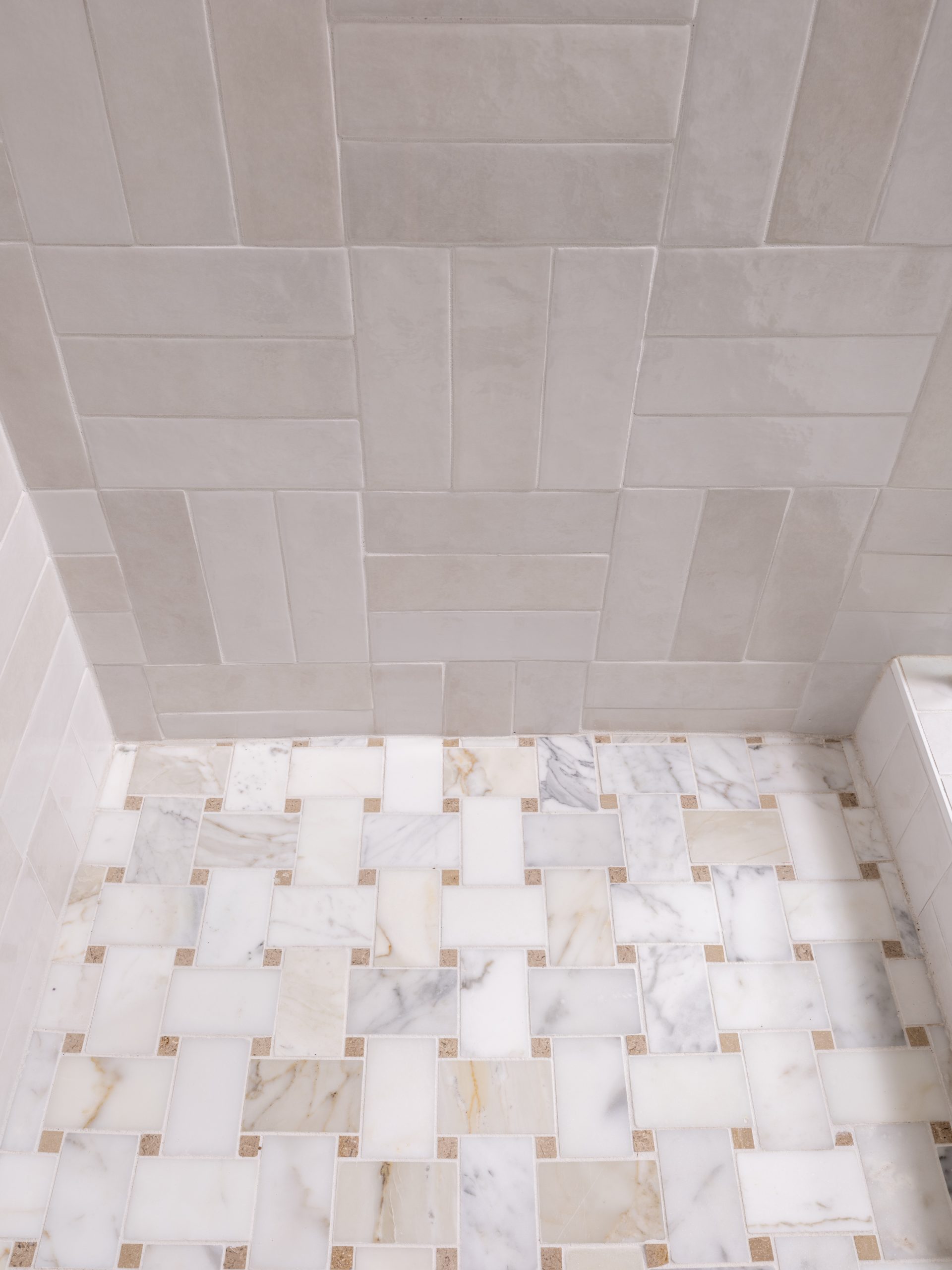 We completely reworked the space, replacing the old tile and removing the tub to create a more open, modern layout. For the new flooring, we chose a classic basketweave tile—one of my personal favorites (I have it in my own bathroom at home!). When Shelly mentioned that this pattern reminded her of her mother, I knew it was the perfect choice. I love when a design element holds a deeper meaning—it makes the space feel even more special.