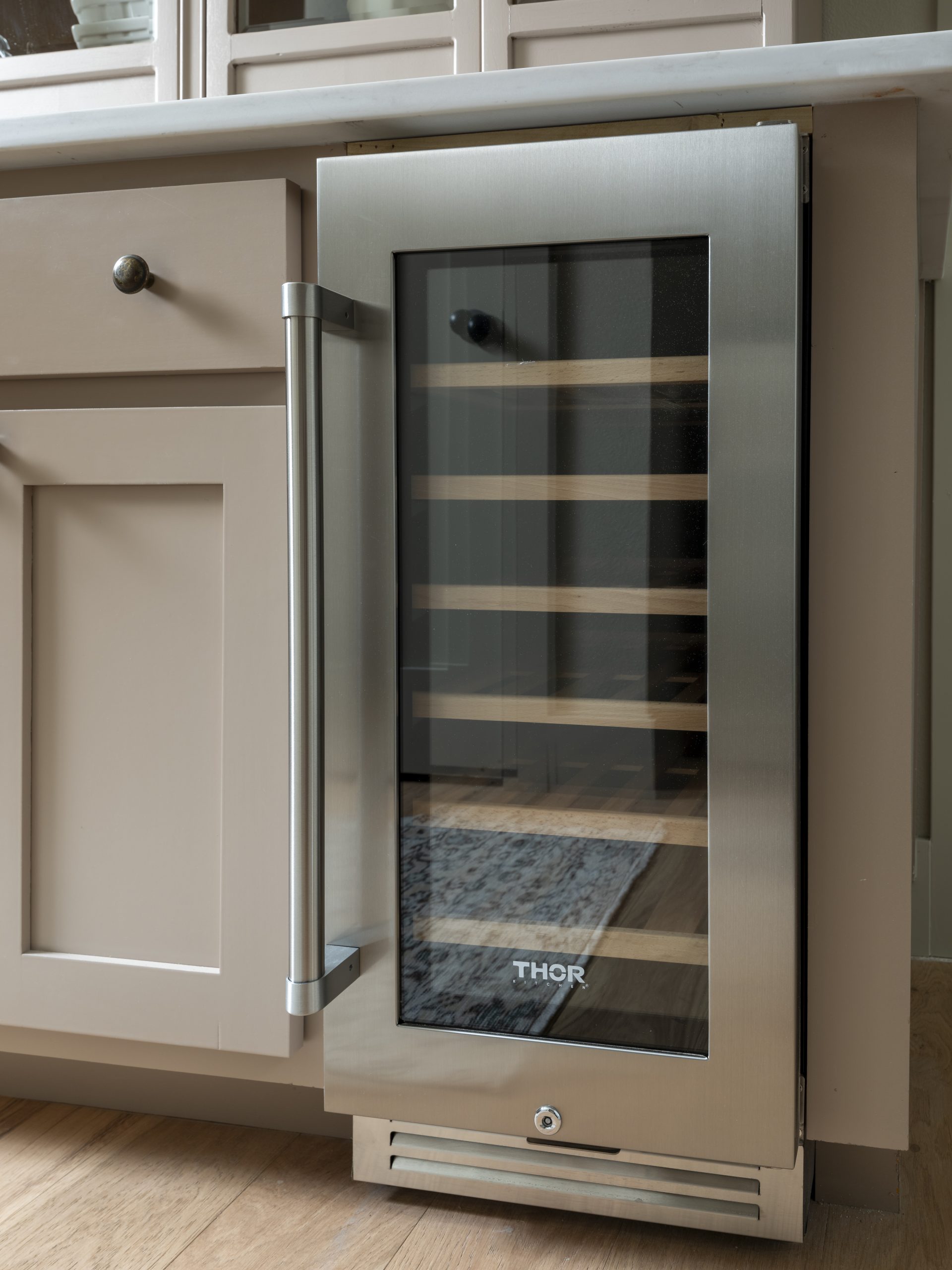 In the main kitchen space, we didn’t have enough space for a traditional island, so we brought in a beautiful antique table instead. Shelly’s mom loved antiques, and this was the perfect way to incorporate her style into the home. Sprinkling vintage pieces throughout a space is such a great way to make a home feel warm and collected over time.