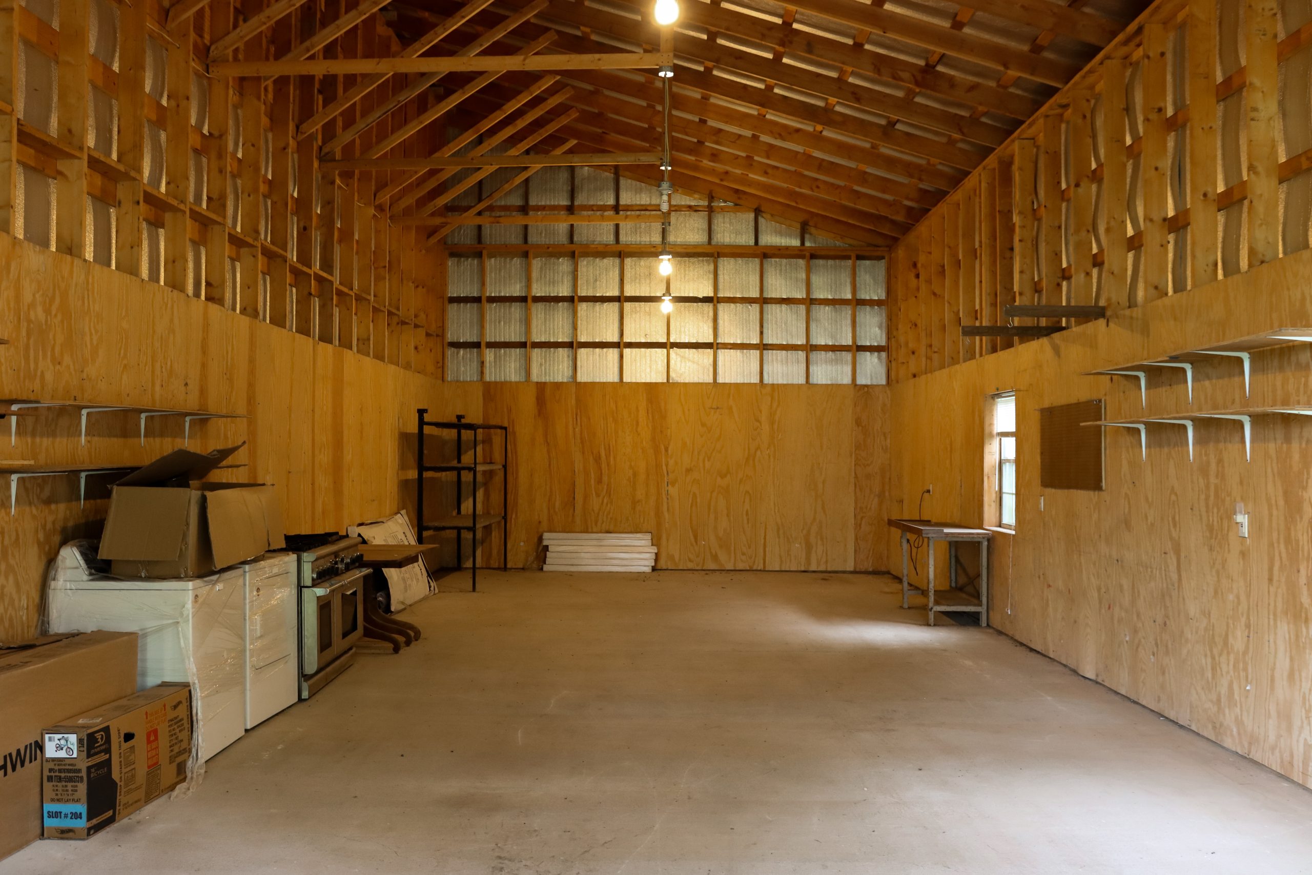 Before we got started, the barn was a big open space with tons of spiders, dust and, overall, just not a welcoming place. There were hay bales where the patio now is. Actually, you might recognize this area as the spot where Gabby shot one of her music videos right in front of the hay bales. We moved the hay bales out and made this spot into a patio for outdoor dining. The patio will be a great spot to host guests and family, plus it’s right next to where they got married!