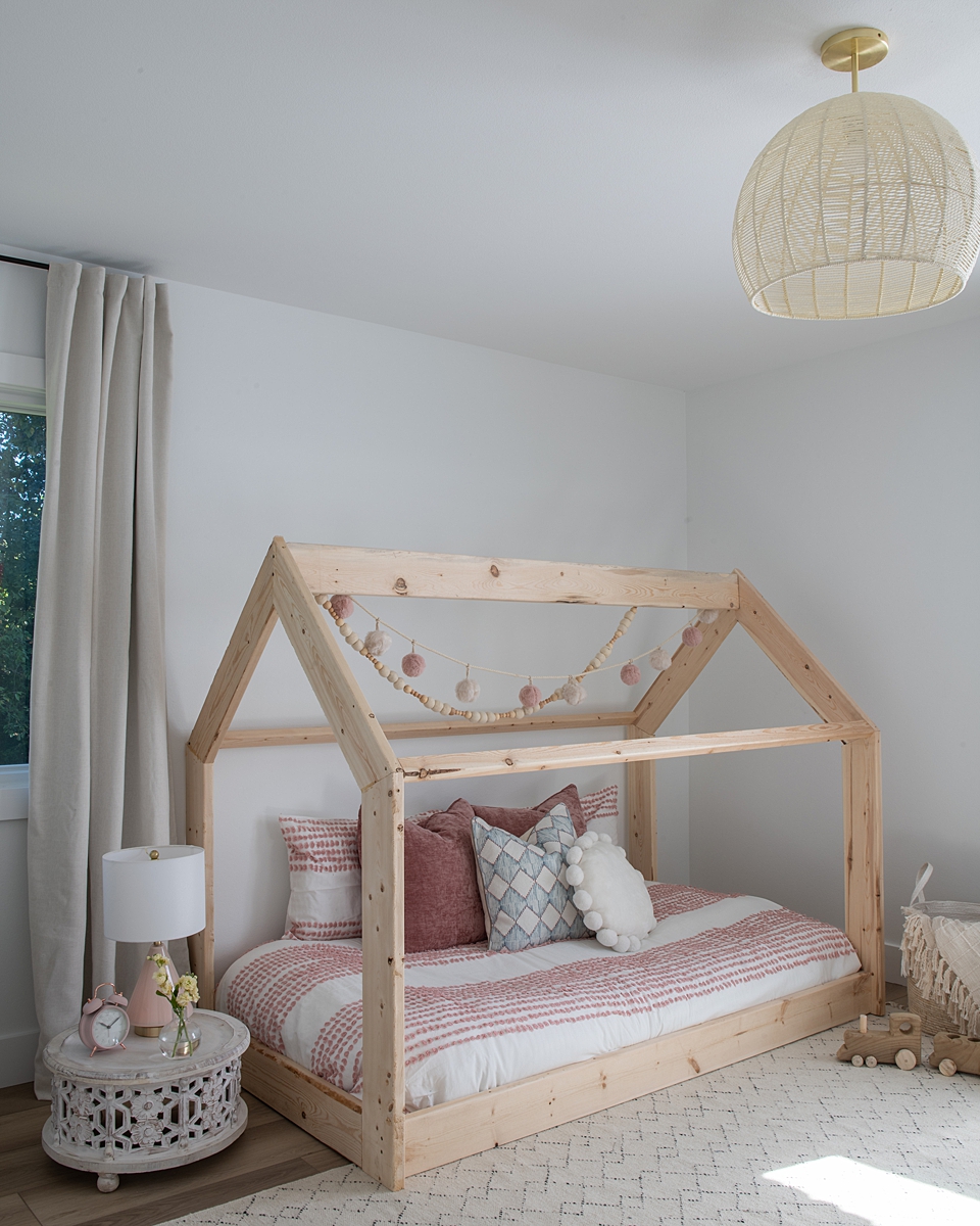 Dave built a special bed for Lemery’s granddaughter, using as a template the bed he made for our daughter, Charlotte. The tent-style structure could work for any of their grandchildren, but we kept it low to the ground for accessibility.
