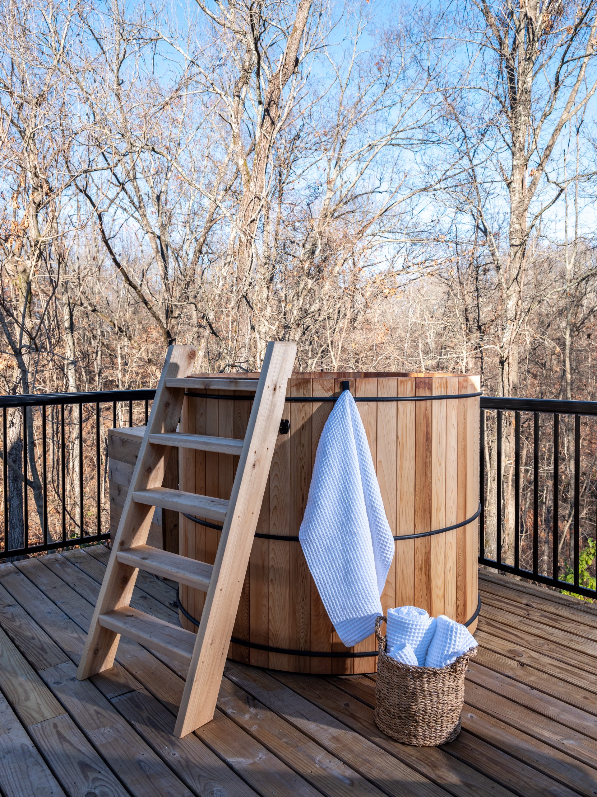 The wooded area behind this home is so peaceful. It’s easy to see why one of Rikki’s first requests was to fix up the porch. With a view like this, you definitely want to make the most of it. We replaced the handrail and repaired the back deck so they could fully enjoy their new cedar hot tub. Beyond the deck, we brought in a new shed. Since they were losing the storage space in the basement, they would now be able to store those things here.