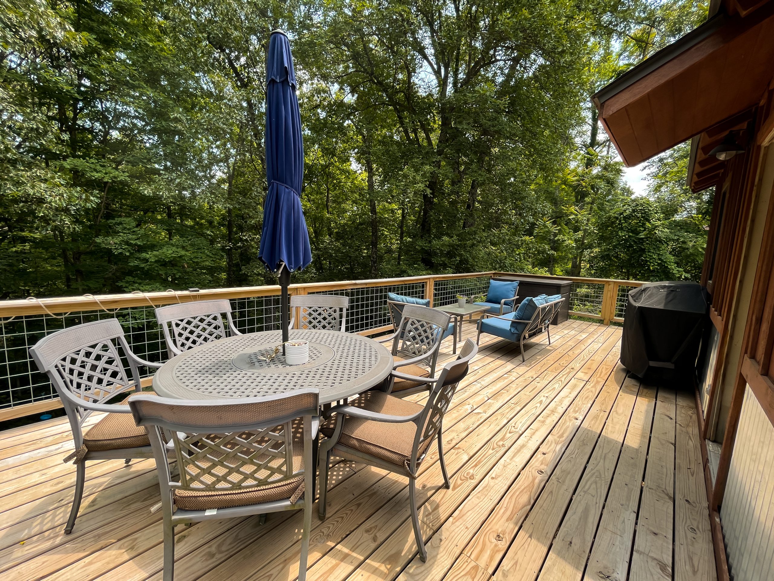 The wooded area behind this home is so peaceful. It’s easy to see why one of Rikki’s first requests was to fix up the porch. With a view like this, you definitely want to make the most of it. We replaced the handrail and repaired the back deck so they could fully enjoy their new cedar hot tub. Beyond the deck, we brought in a new shed. Since they were losing the storage space in the basement, they would now be able to store those things here.