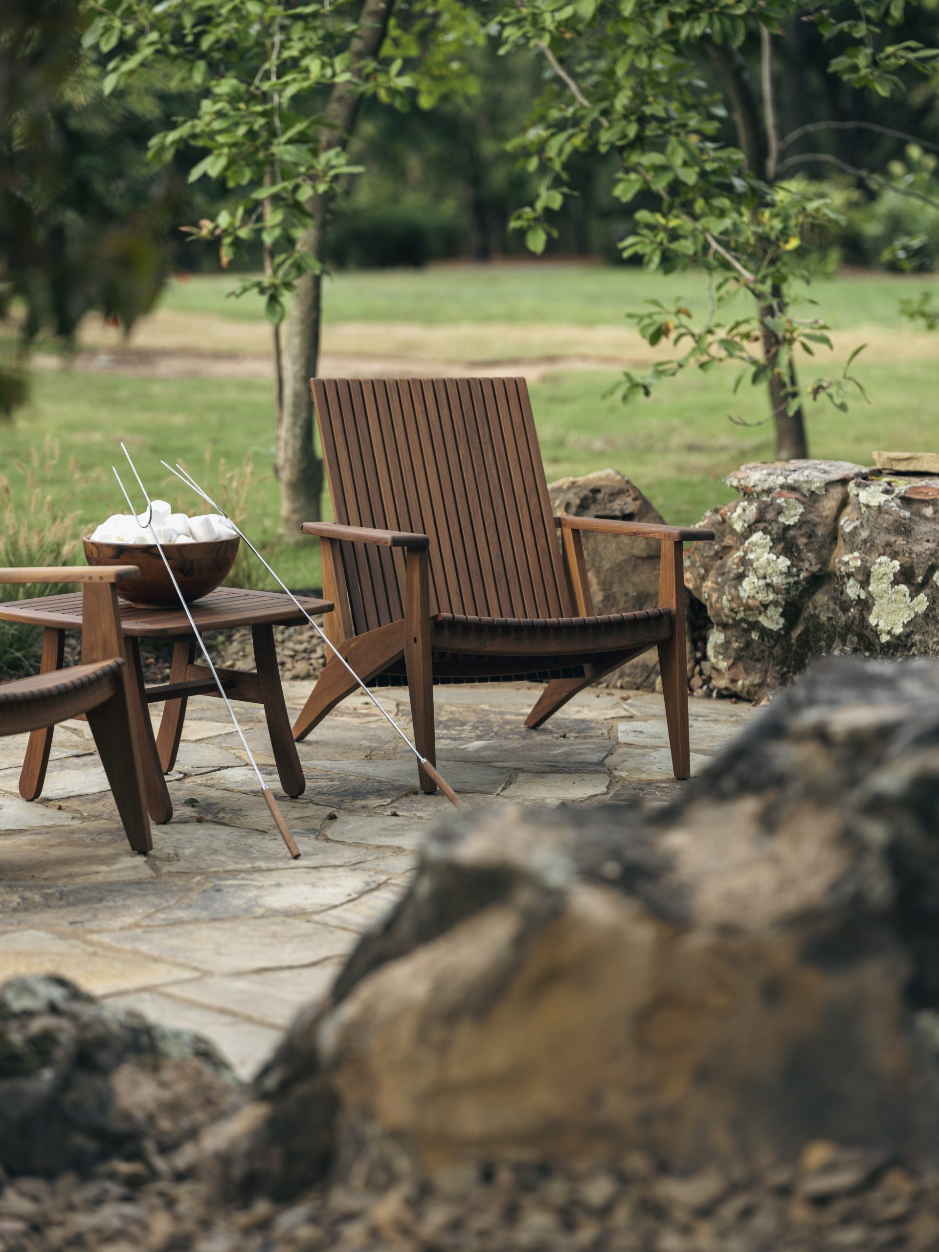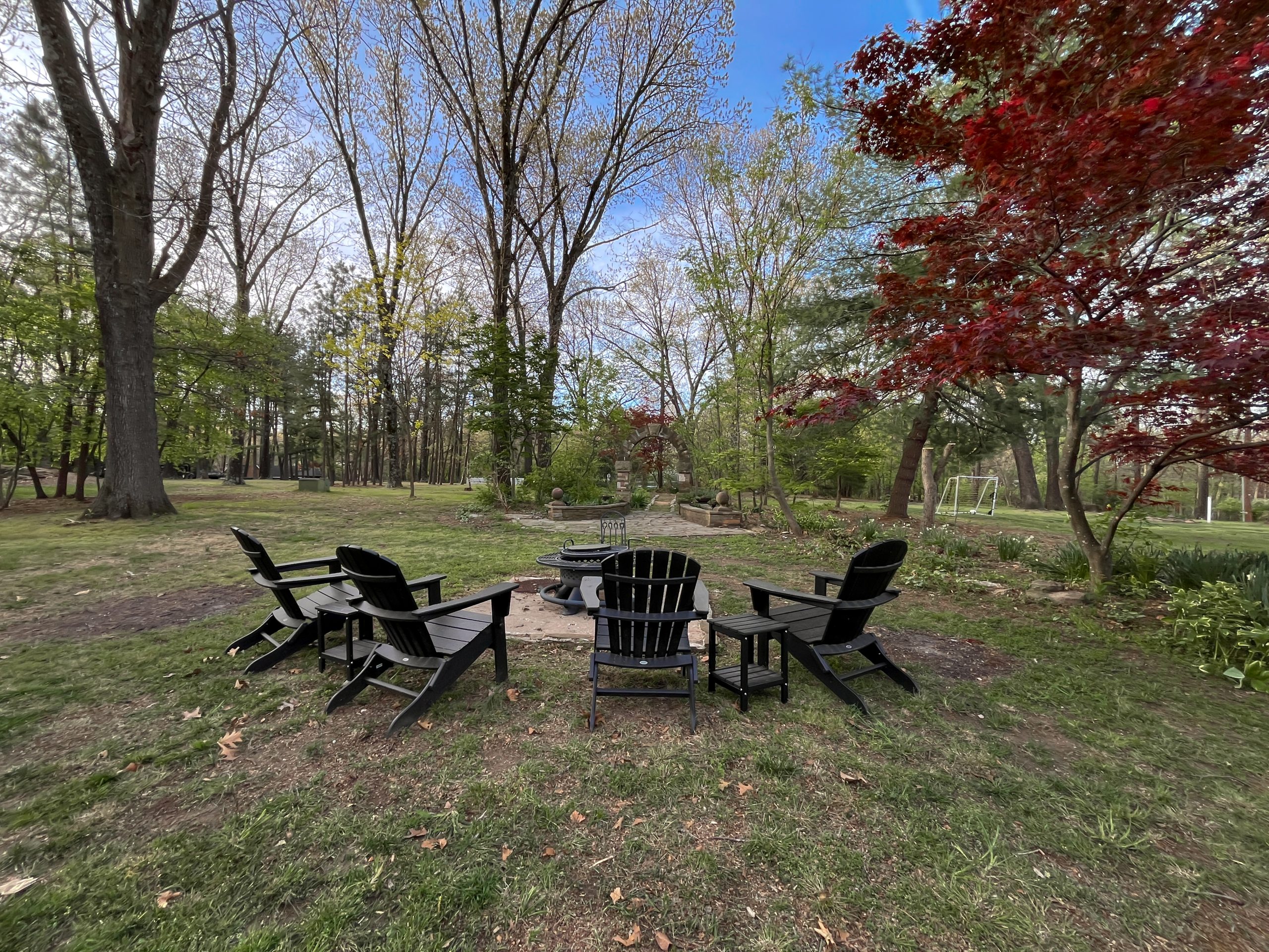 To warm up the space, we added classic wooden Adirondack chairs, making it the perfect spot for s’mores and late-night hanging out. We also laid pavers from the patio to the firepit, seamlessly connecting the entire backyard into one inviting, open-air retreat.
