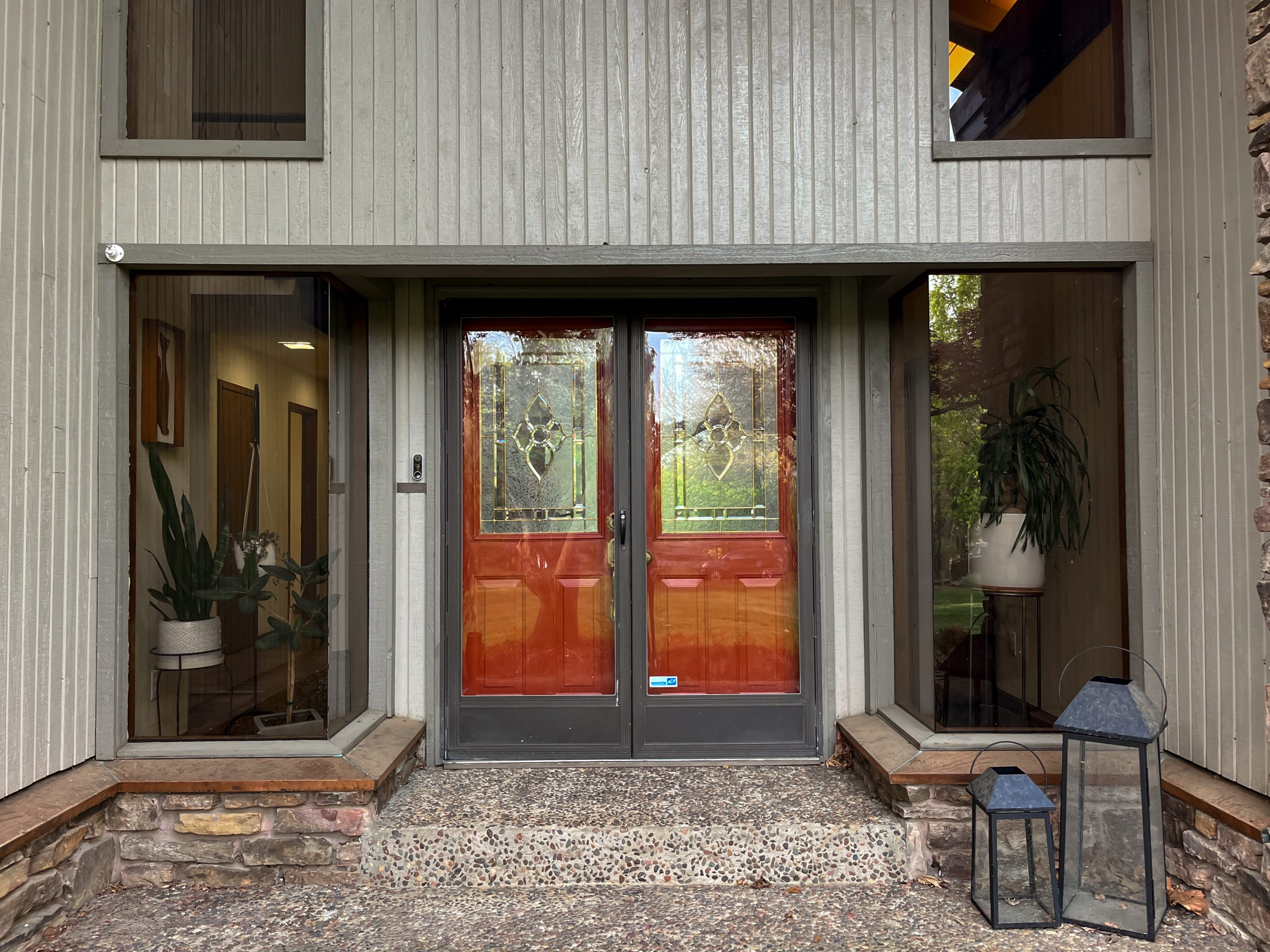 The house had outdated siding that needed to be removed, along with a deteriorating deck off the primary bedroom that had become unsafe. The front door, a replacement from years past, didn’t match the home’s original midcentury design, leaving the entrance feeling out of place.