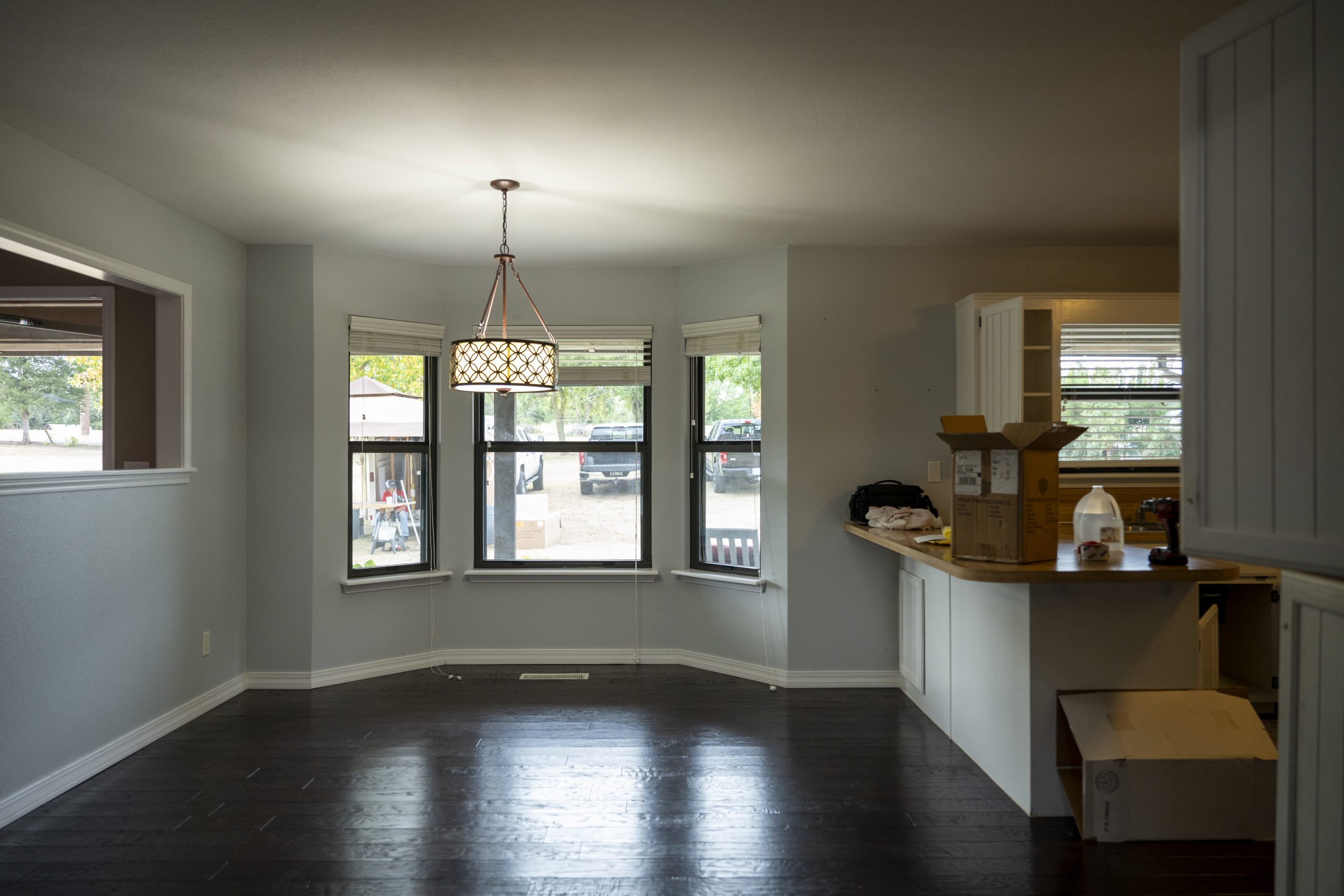 The stonework on the house was nice and didn’t need painting, but the entrance didn’t have that welcoming charm we wanted for the Morrises. Our boys helped by adding the natural wood around the posts to bulk them up—I love that they now have the experience from working alongside Dave to help in a meaningful way.