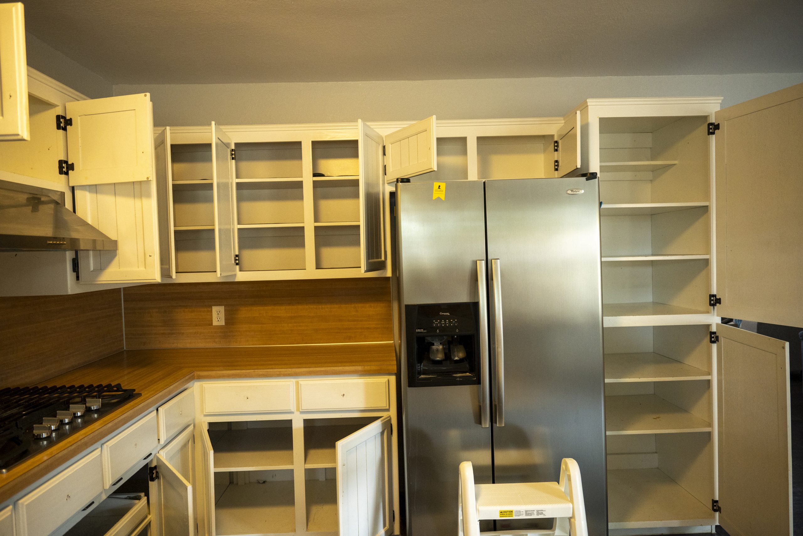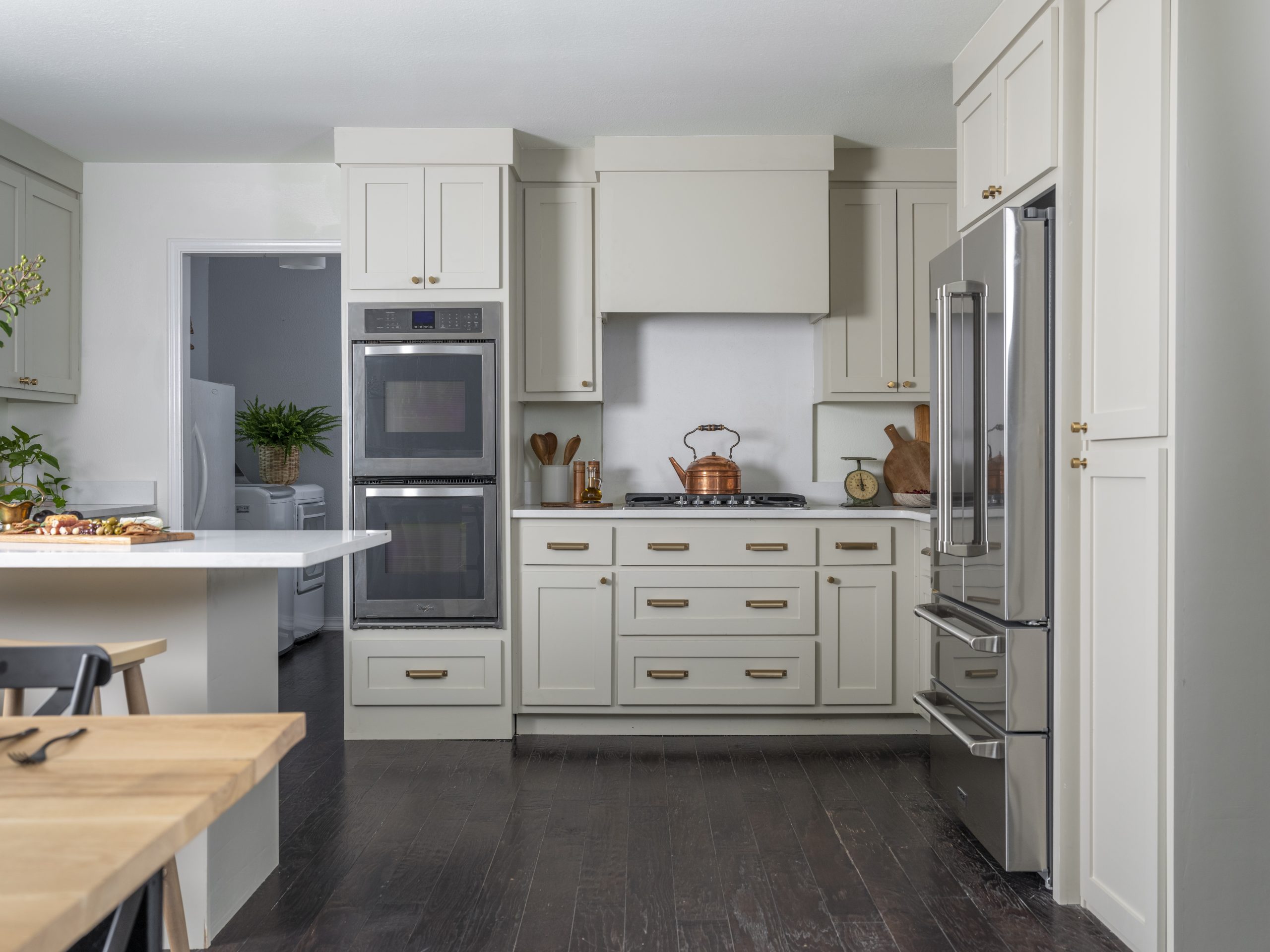 We wanted this to be a complete surprise for Kristen, as she thought we were only working on the backyard. The original plan was to keep the existing lower cabinets and only change out the cabinet doors. This is a good way to save money and time. But it turned out to be a complete transformation, thanks to Chris, our talented cabinet maker. He went above and beyond, crafting brand-new cabinets in his Arkansas workshop and bringing them in on the day of the build.
