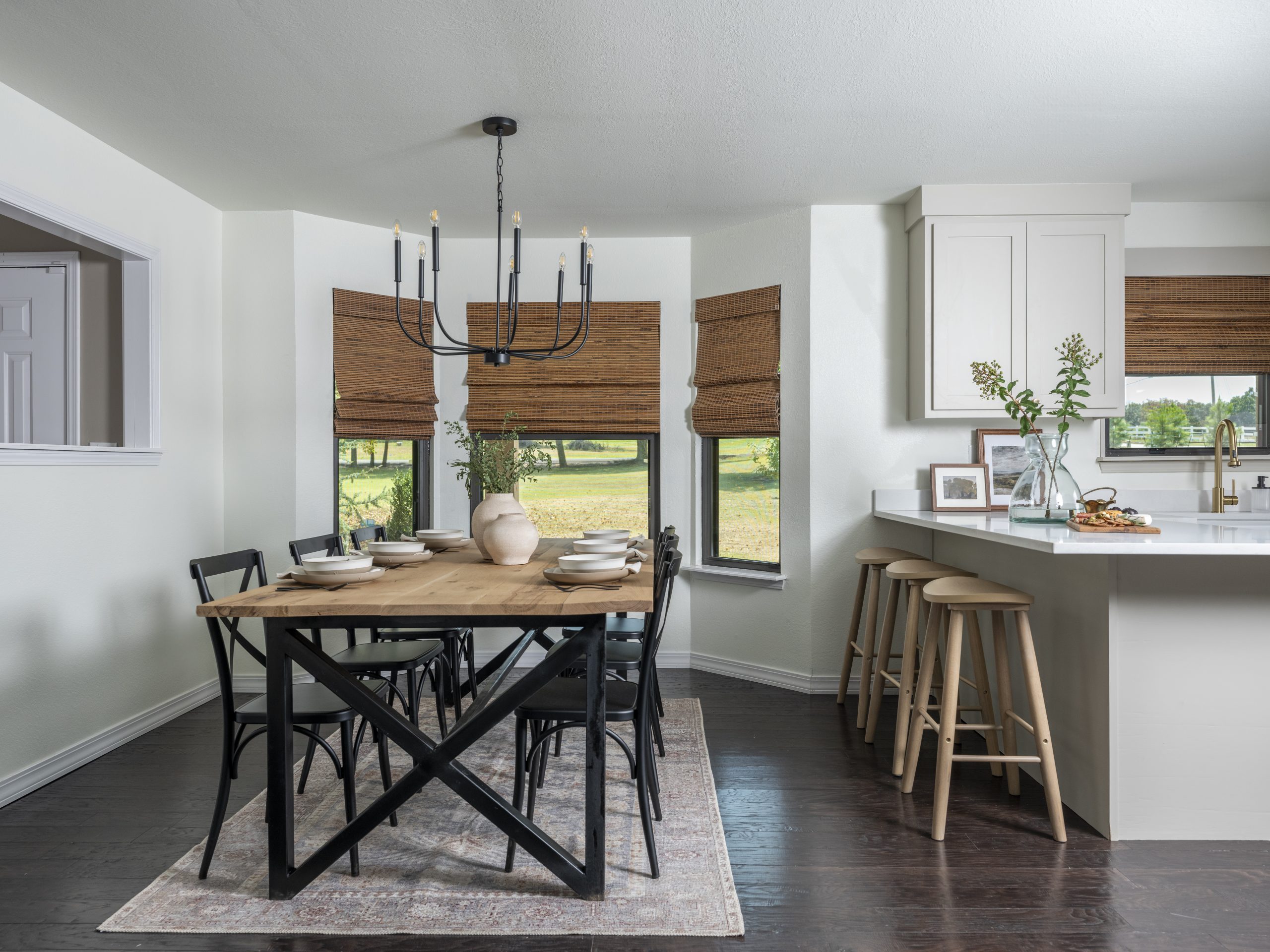 One of my favorite touches is the dining table Dave built. The steel base and white oak top—crafted from a fallen tree on our property—feel like such a meaningful addition to the space and It’s the perfect touch for that farmhouse style Kristen likes.