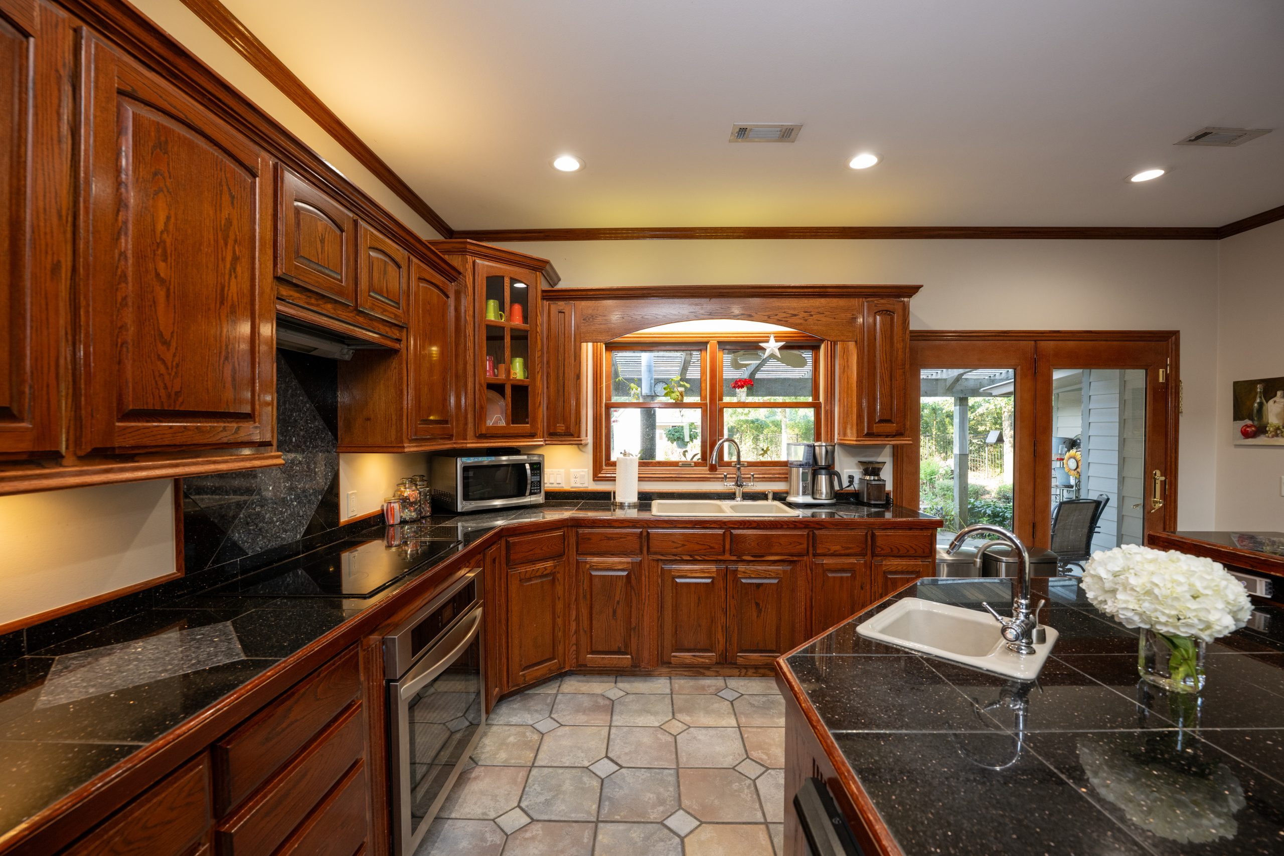 For a family that loves to cook and gather together, this kitchen simply was not working. The large island got in the way and did not allow enough room for multiple people to work at the same time. From the tile on the counters to the tile on the floors, the entire kitchen needed an update, so we gutted the space and started over with new cabinets, new appliances, and a much more functional island.