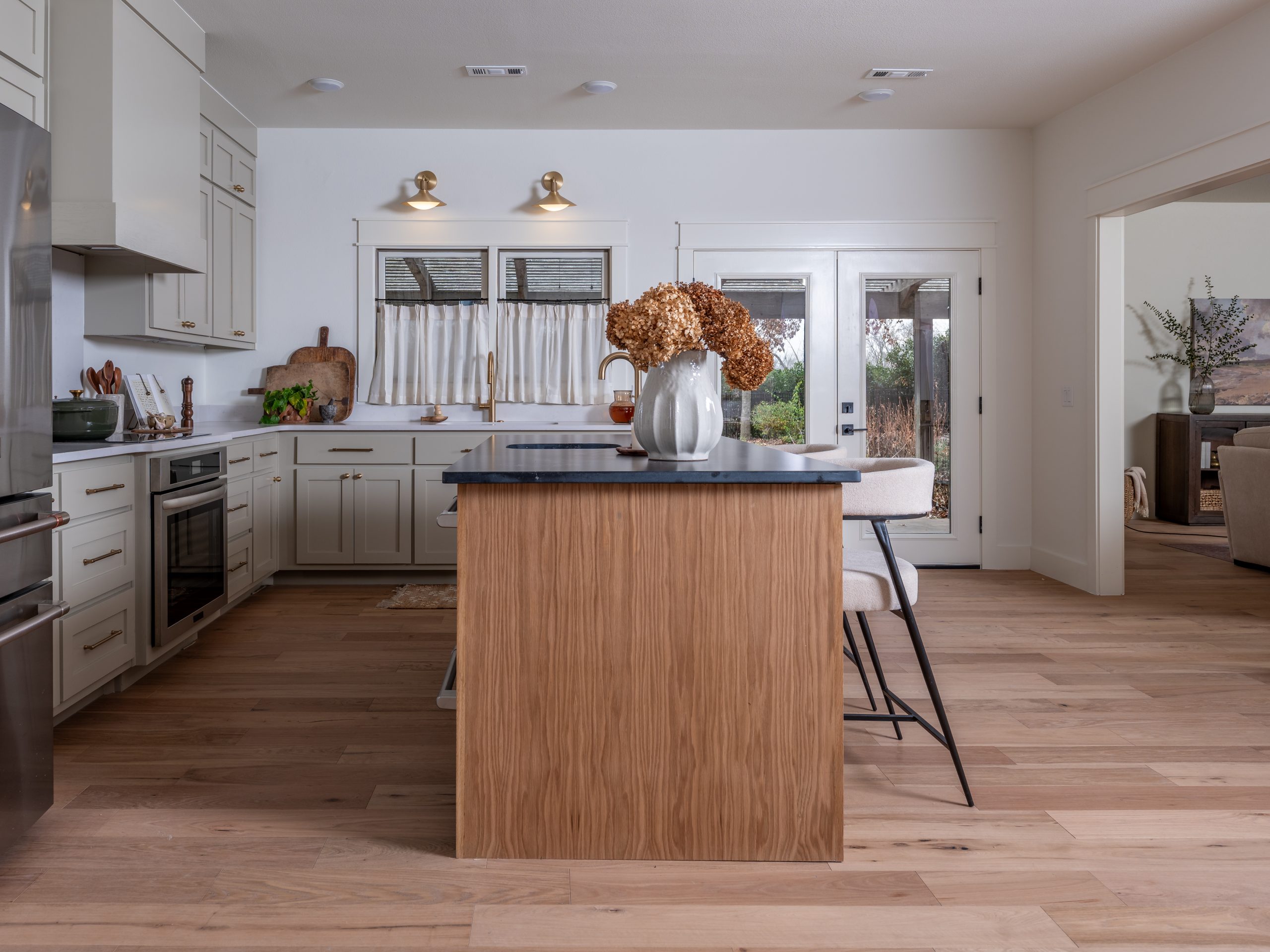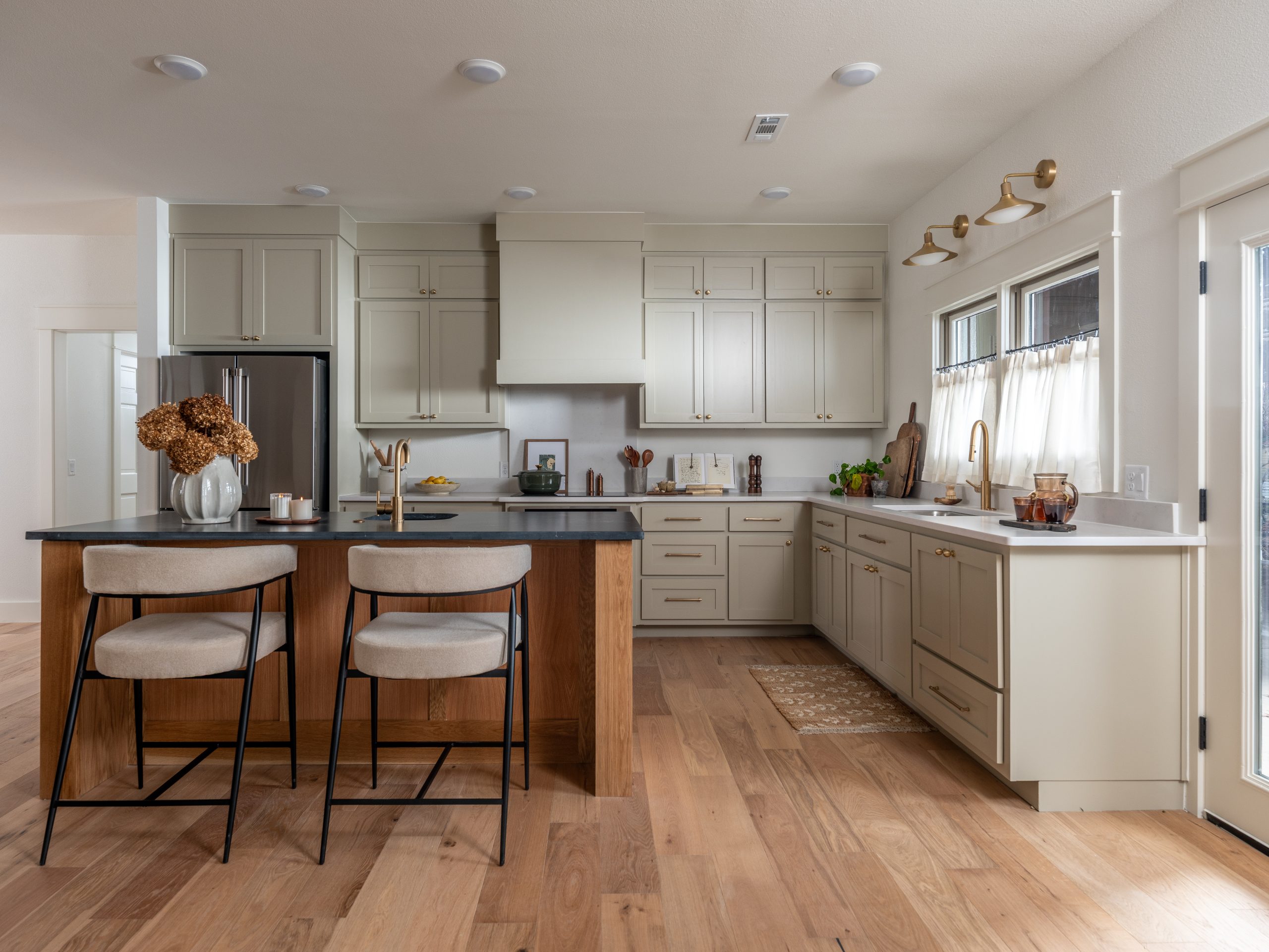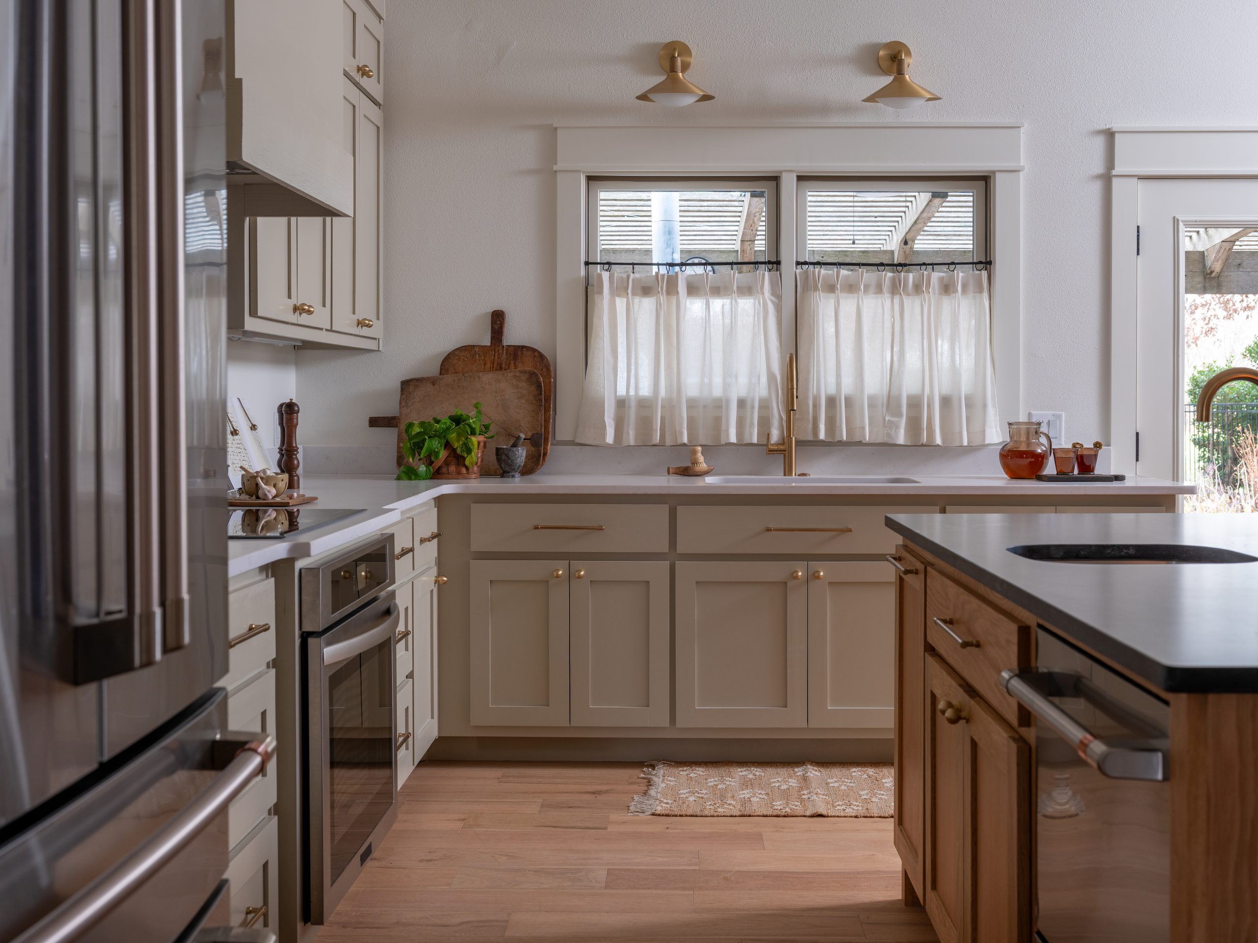 This is my favorite update in the house. Angie asked for a “dirty kitchen,” or scullery, where she could work on her farming projects. While the main kitchen is the pretty space where the family can cook, eat, and gather, this second kitchen is where Angie can bring in garlic from the garden and work on her canning, dehydrating, and jarring projects.