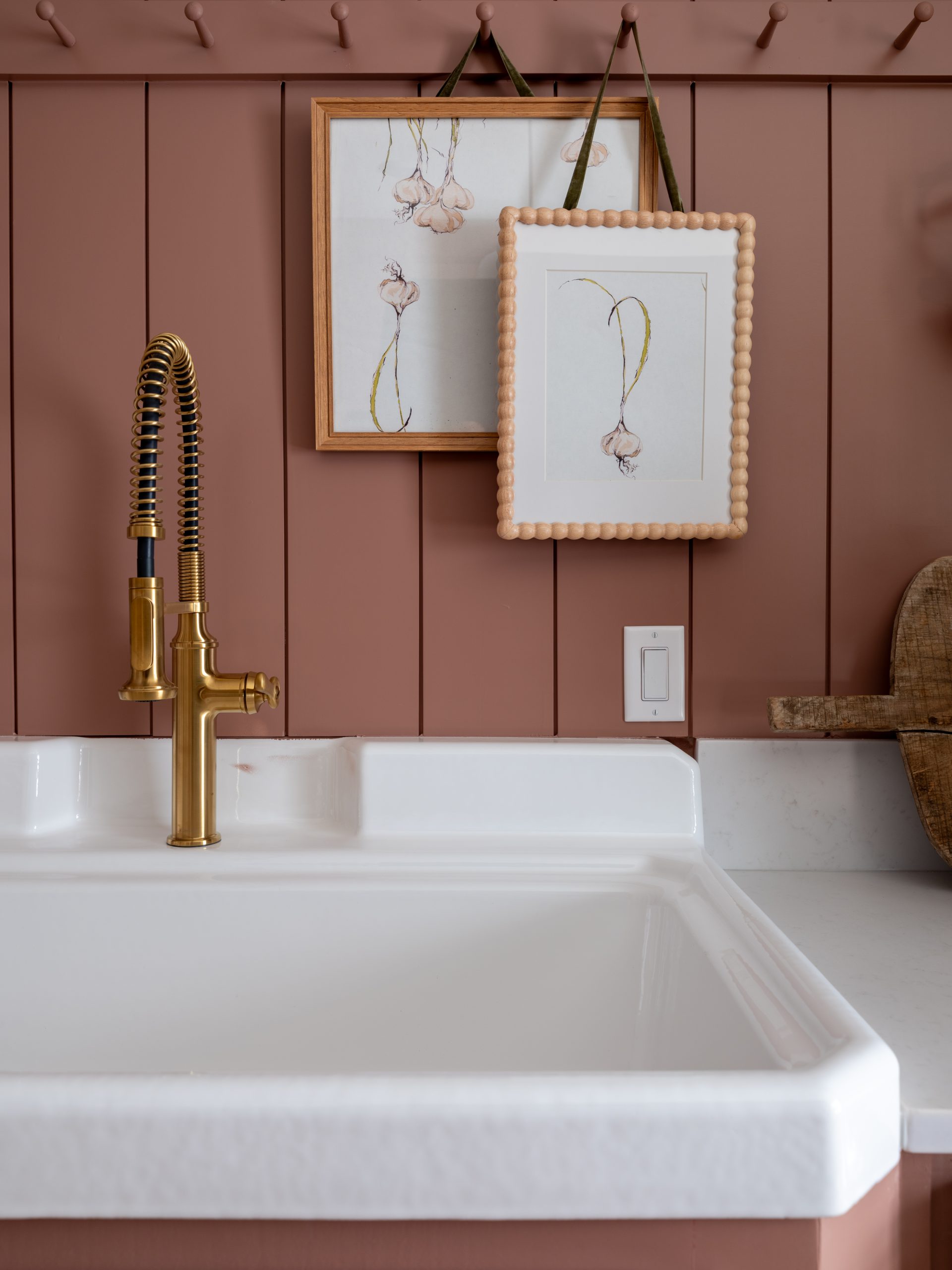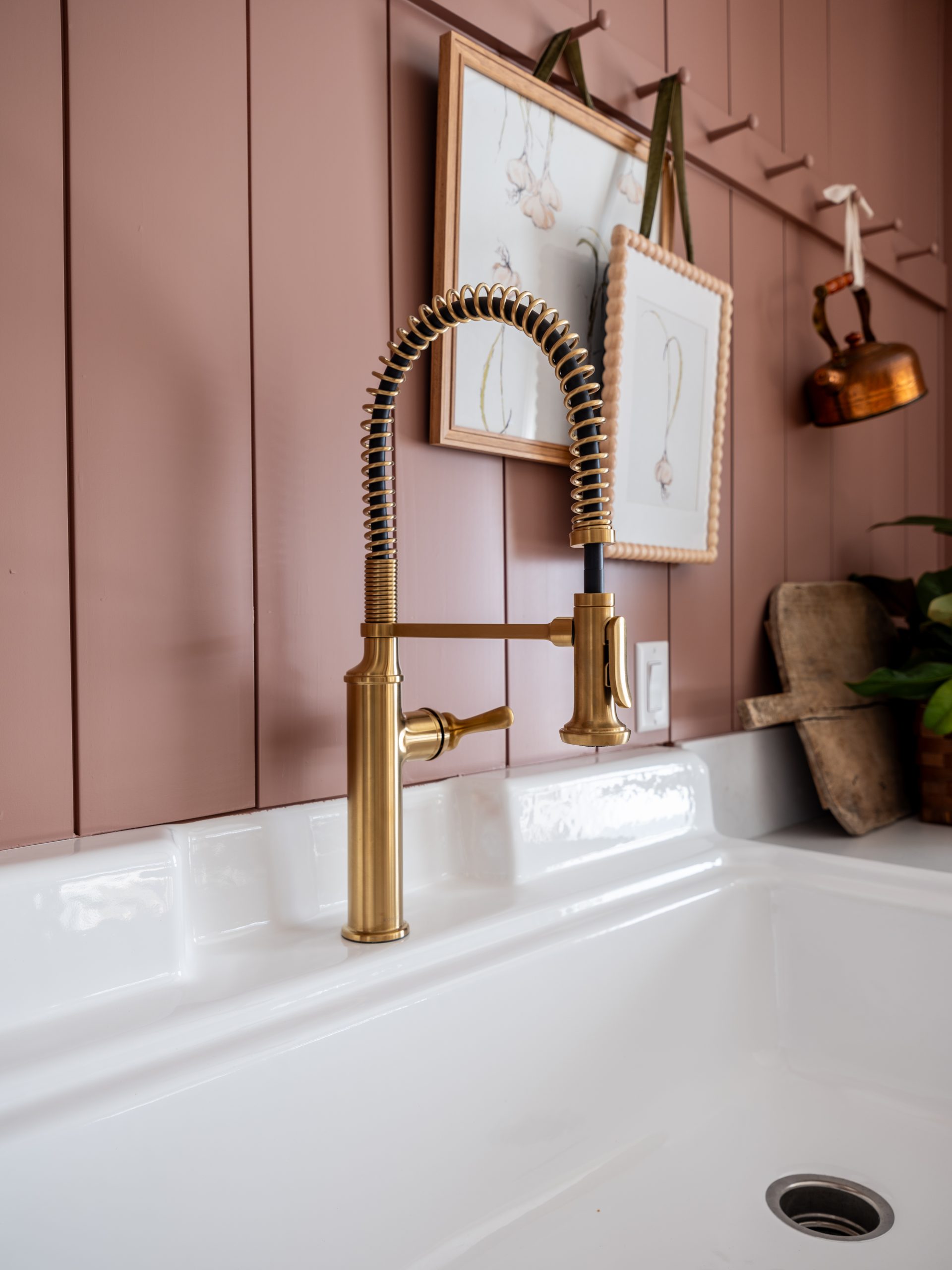 By moving the primary bedroom to the other side of the house, we were able to free up this large space and turn it into the cutest scullery. We added cabinets along the back wall, a double oven, a cooktop, and a large, old-fashioned sink. Dave had an antique sink sitting in his shop just waiting for the right home, and this was it.