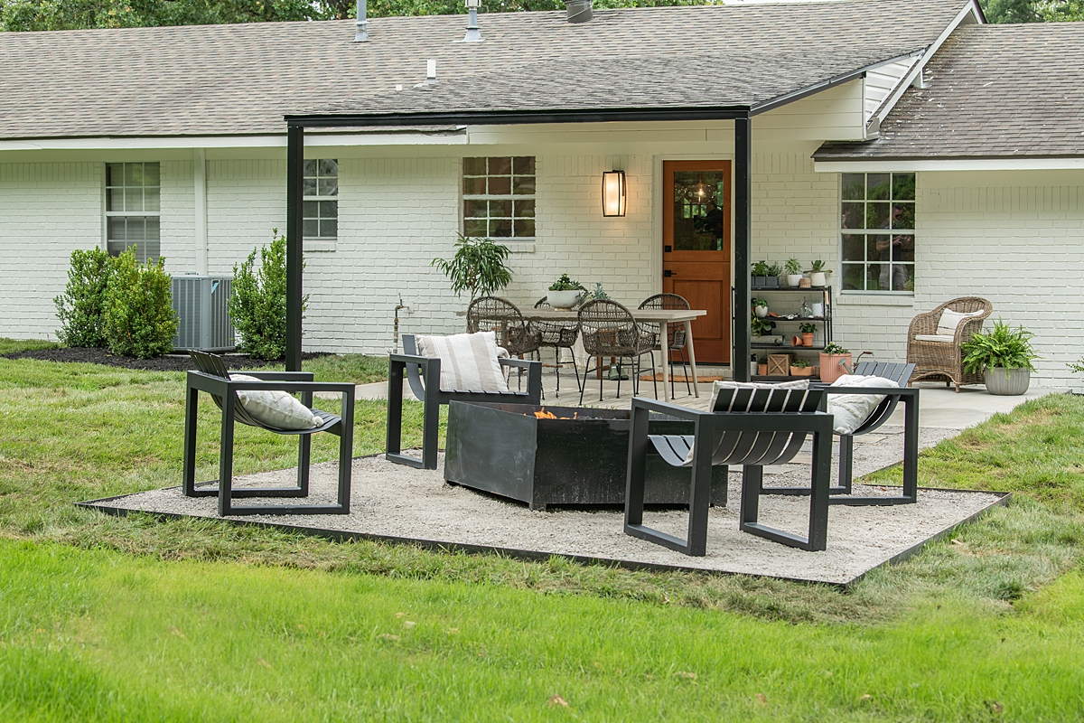Kimberley and her boys have always loved to sit around a fire and host guests, so we planned for a backyard area that flowed from the inside and became an extension of the house. Dave built a covered porch of steel and a new fire pit in the backyard, in memory of the times the Carnahans spent together around a fire. We made this a gas fire pit: no chopping wood required. The new backyard will allow them to continue the family tradition while they entertain friends.