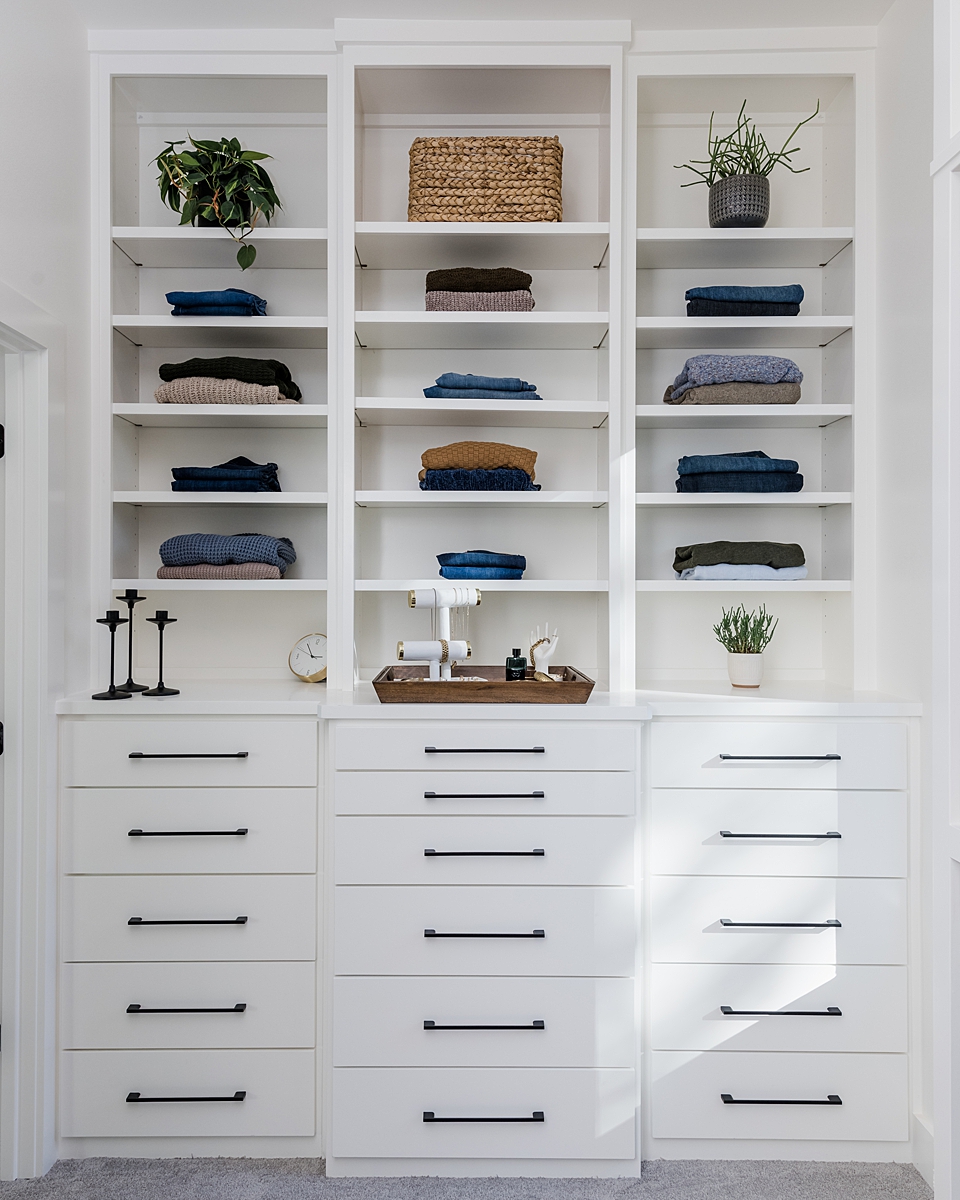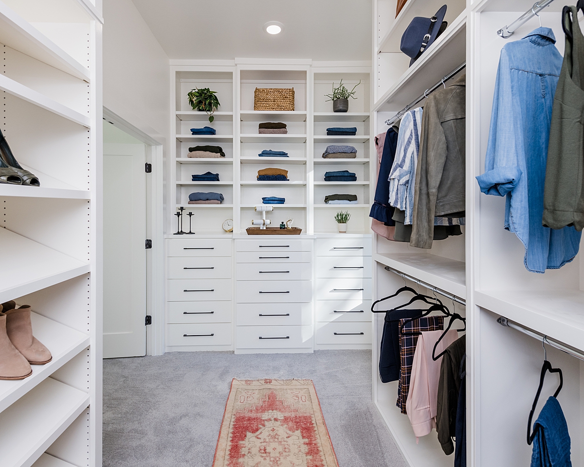 We also gave Angie and Rob a large, cozy bedroom and a giant walk-in closet. This is the closet of my dreams!