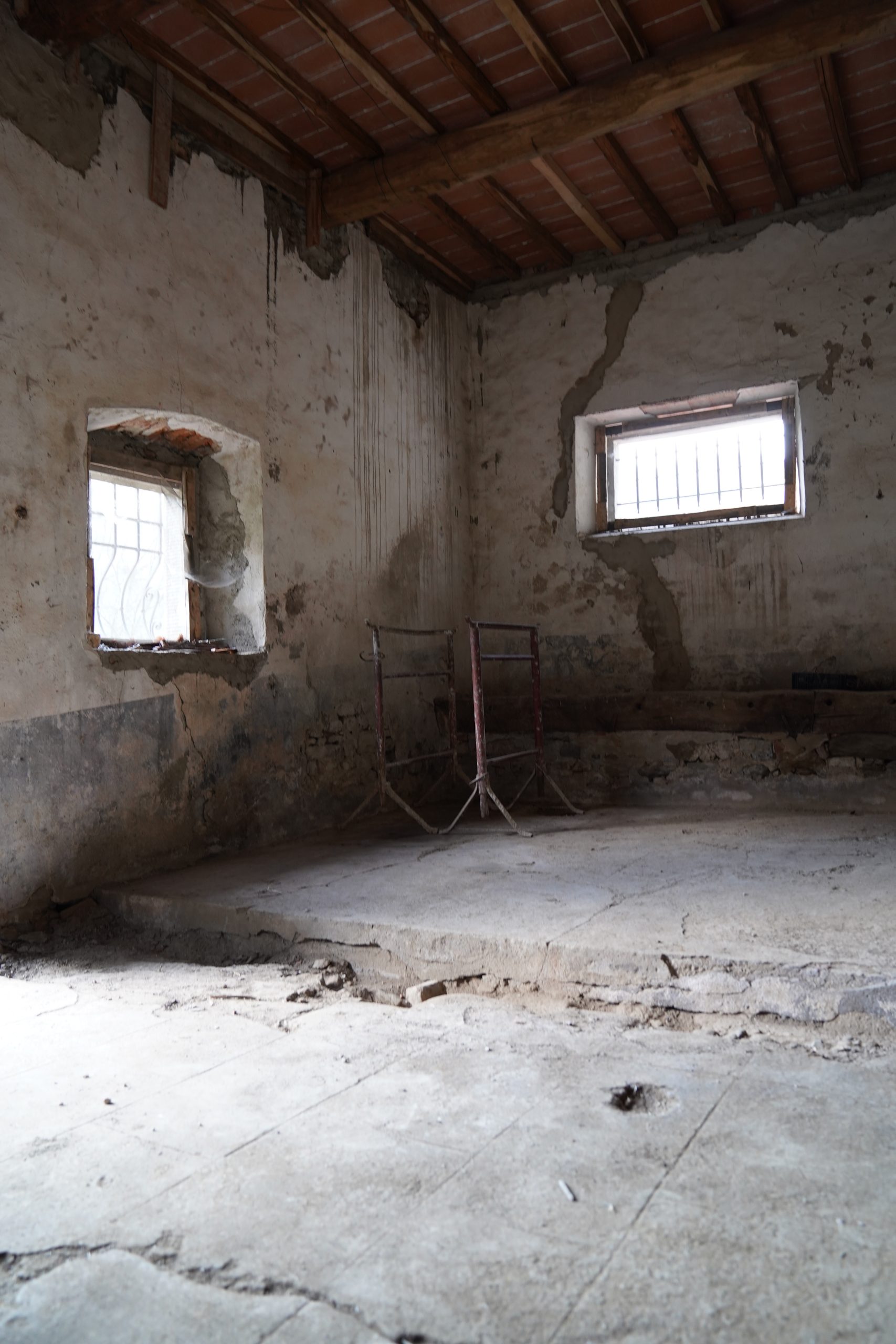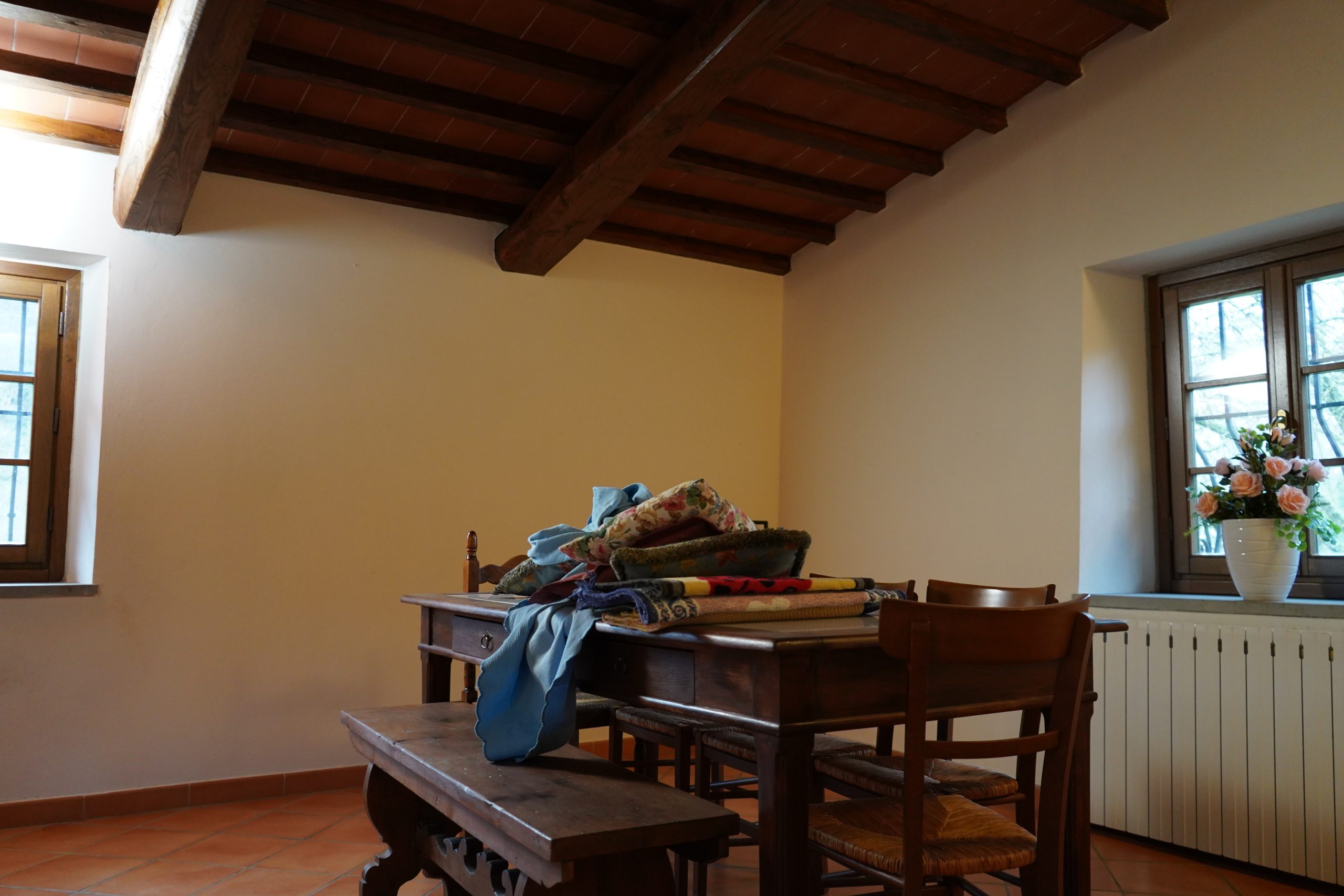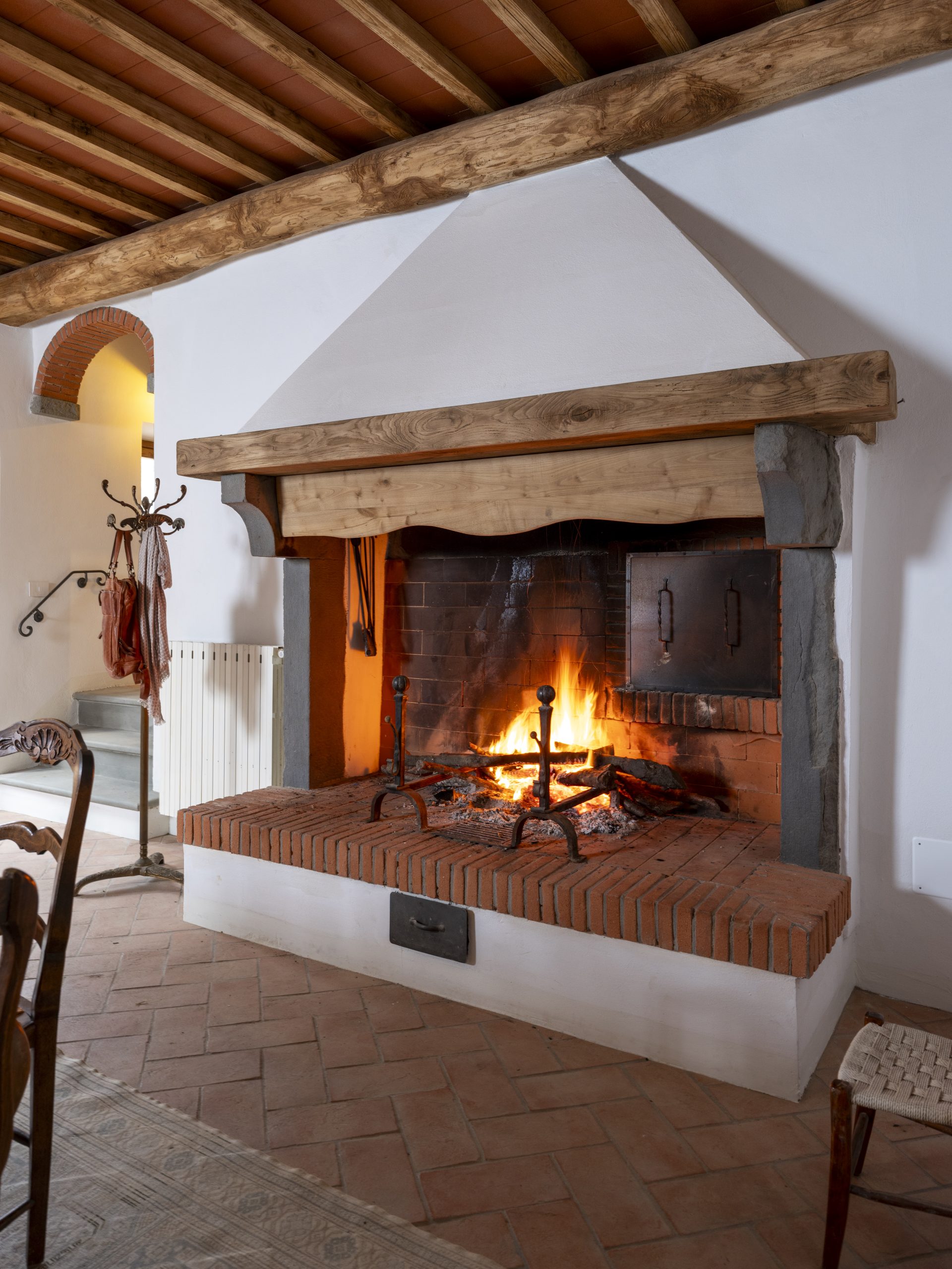 When you walk through the front door of Camposasso, the first space you enter is the new dining room with the original (spruced up) fireplace (I LOVE a fireplace in a dining room). We moved the old, small and not-functional kitchen out of here by creating a new kitchen and walk-in pantry + wine tasting room where the ancient animal stables were and opened the wall separating the two spaces in order to connect them yet still keep them distinct and cozy.