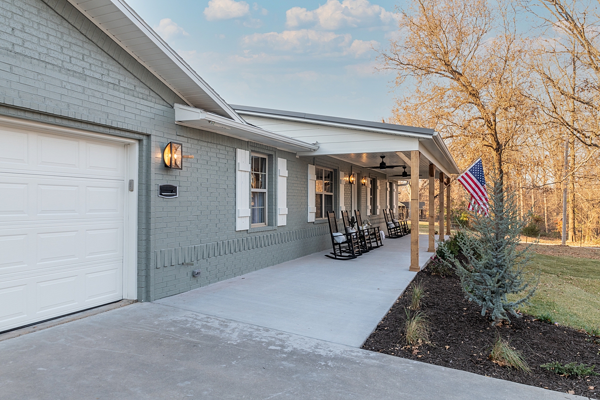 The small porch definitely didn’t do the house justice, so we took it out and replaced it with an inviting porch that extends across the front. A shed-style roof with cedar posts offered just the right contrast and took the look from standard to sophisticated. By removing the stone border from the garage and changing the shutters from black to white, we transformed the appearance to that of a beautiful and inviting home.