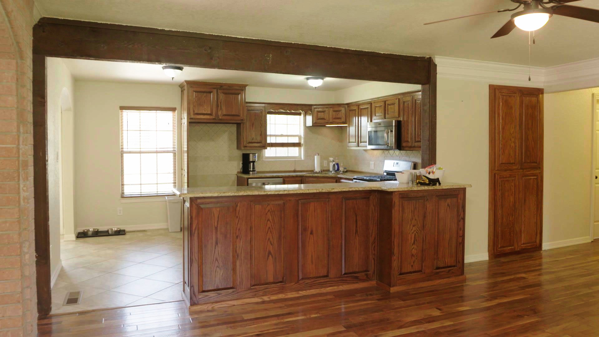 A few odd designs in the interior needed to be changed to reflect how they wanted to use this house as family time together was of utmost importance. The changes we planned required a lot of demolition, and we set to work removing all the kitchen cabinets, countertops, and floor tile as we knocked down walls and made plans to reconfigure the main living areas.