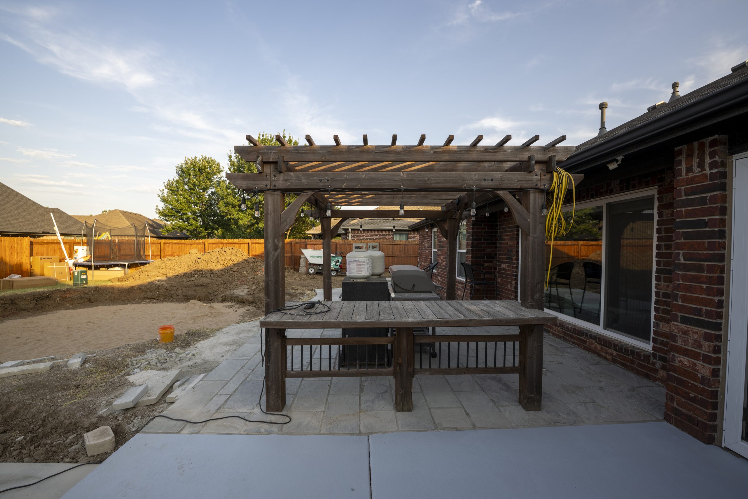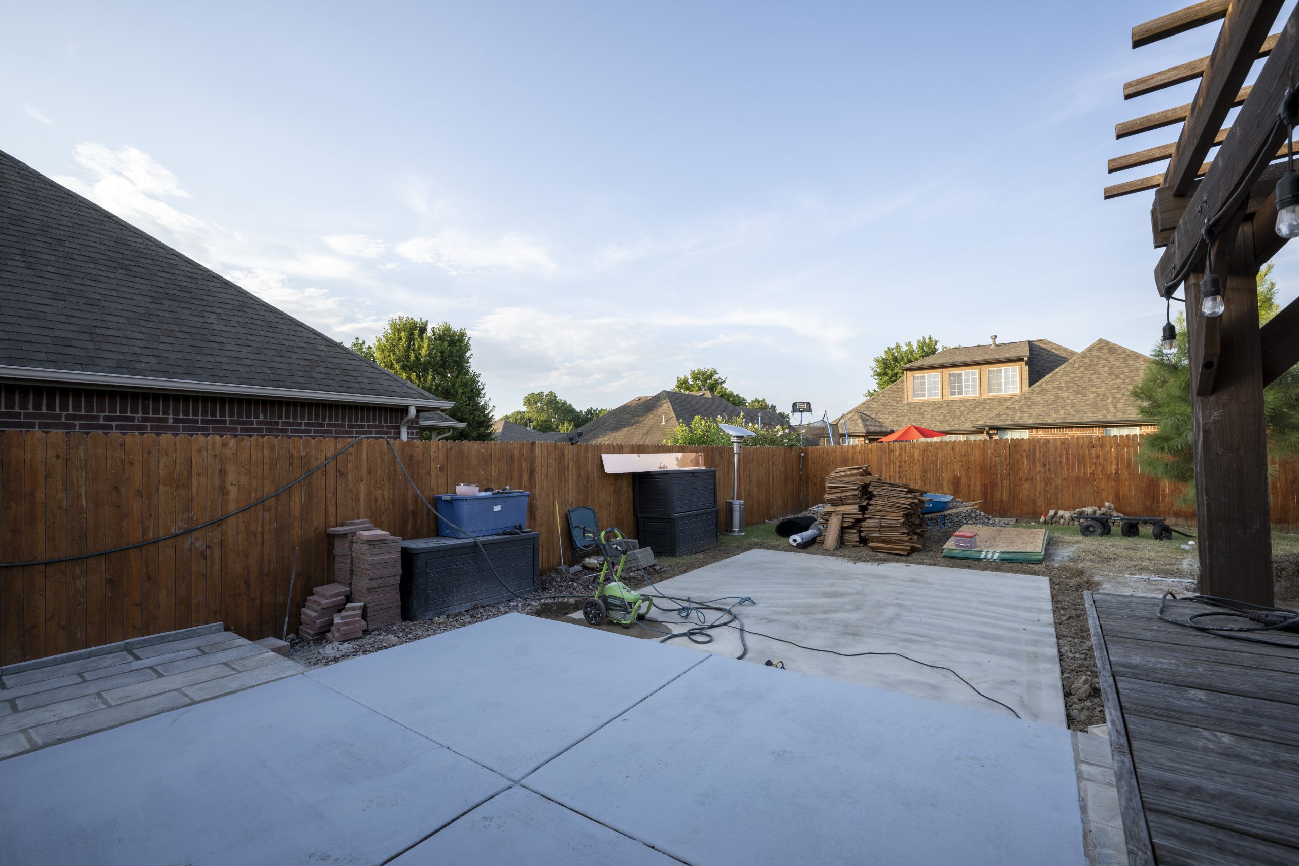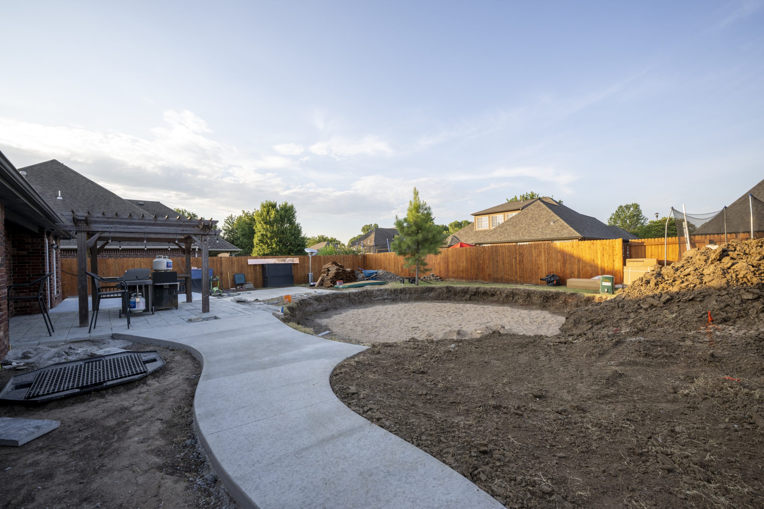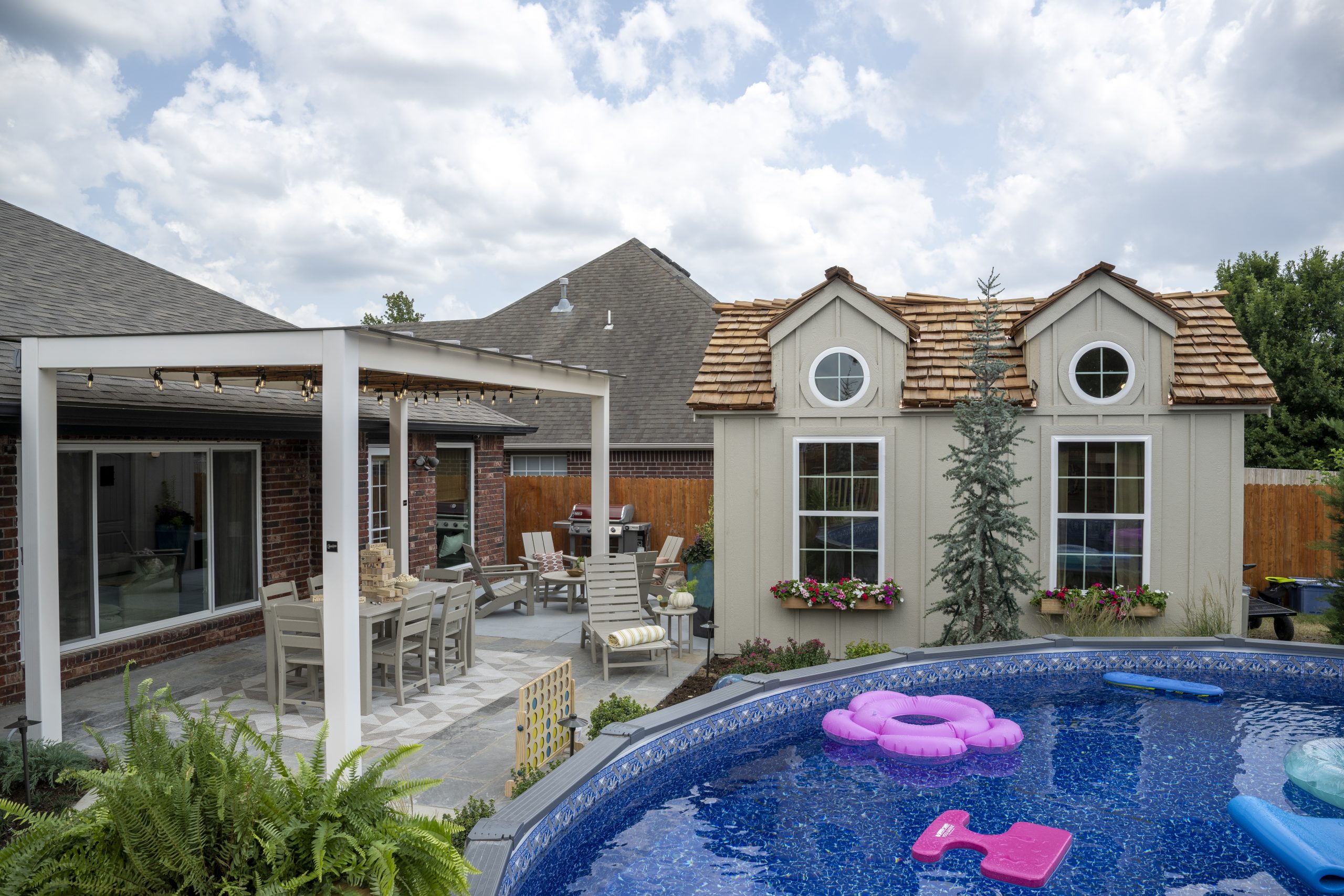 The Esmeyers had a great space to work with, a large, flat area that was perfect for what Jay had in mind for his family. What Teal wanted more than anything was a pool, so of course that became our biggest focus. I’m sure you can imagine my frustration when, for a moment, it looked like we might not be able to deliver on that wish. But that challenge quickly turned into an opportunity for our team of volunteers to shine. I was amazed by how easily and quickly the Fiesta Pools team and our volunteers stepped up, moving the entire pool structure just a few feet to meet the city’s strict code. We lost a few hours because of it, but thanks to the Tulsa Fire Department, the pool was filled with water in no time.