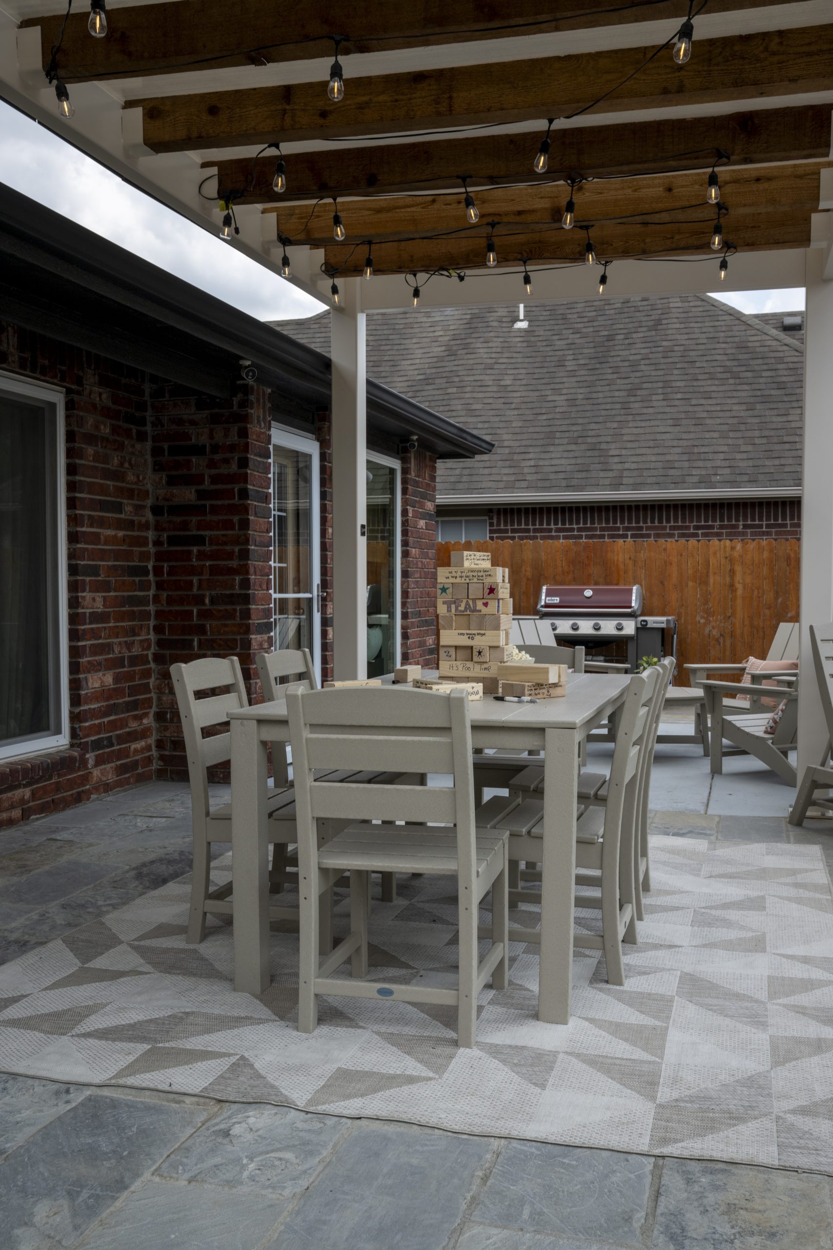 Since we took down their existing pergola, we gave them a new one to provide cover from the rain and shade, plus patio furniture all around – including adirondacks – to make it the ultimate hangout for family and friends.