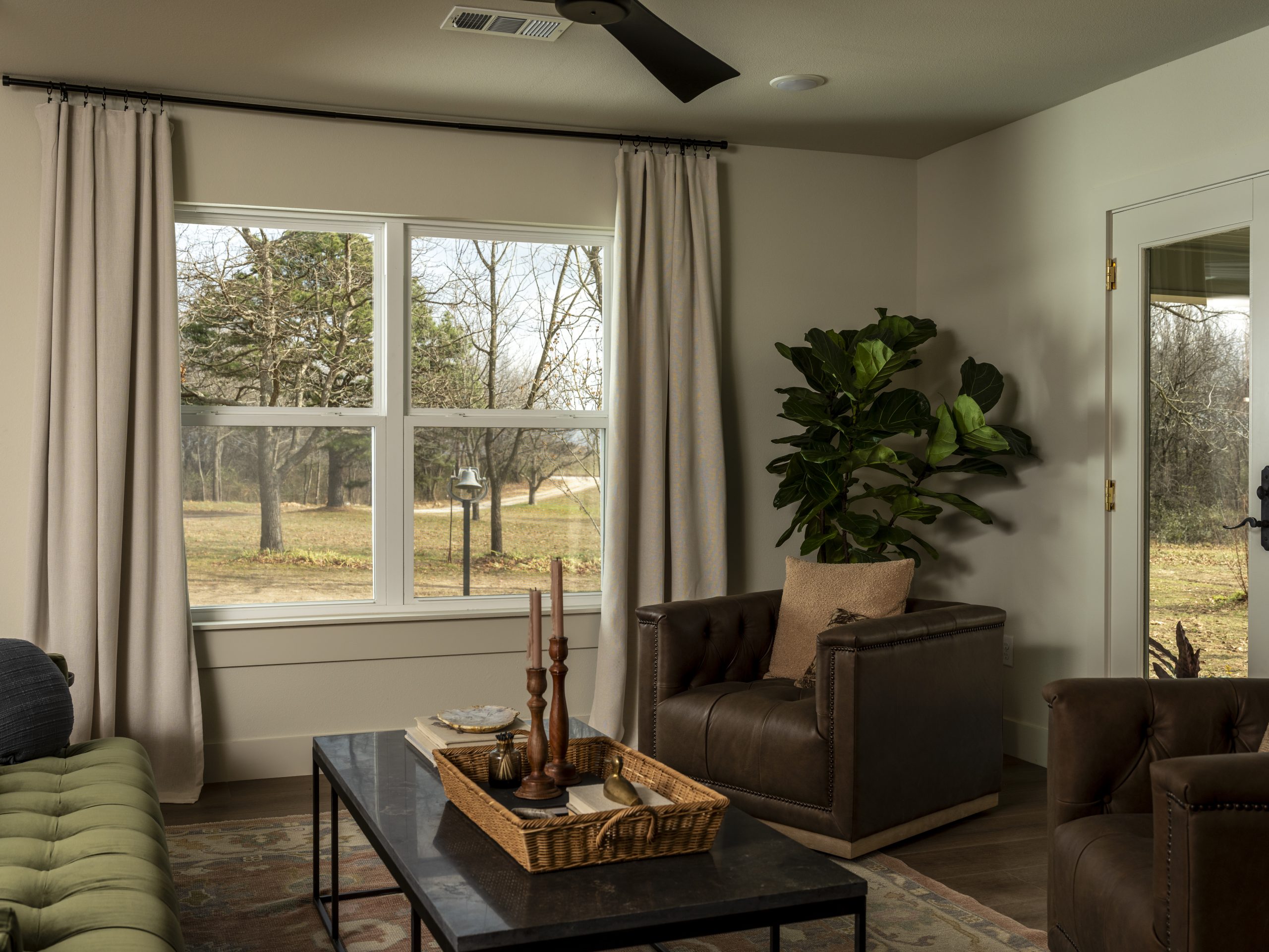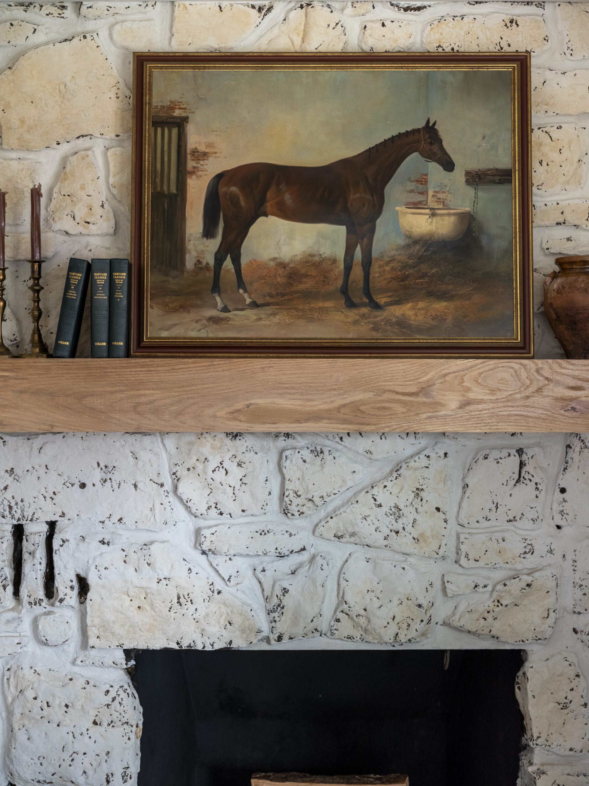 Since we lost the stone from the main wall, we brought charm back in other ways — leaving the stone on the chimney and hanging the family’s original dinner bell in the front yard. The Leggs had kept that bell from Laura’s childhood — the same one Laura’s mother would ring to call her father in from the farm for dinner. We modernized it just a bit by swapping the fraying rope for a custom horse lead from a local equestrian supply shop.