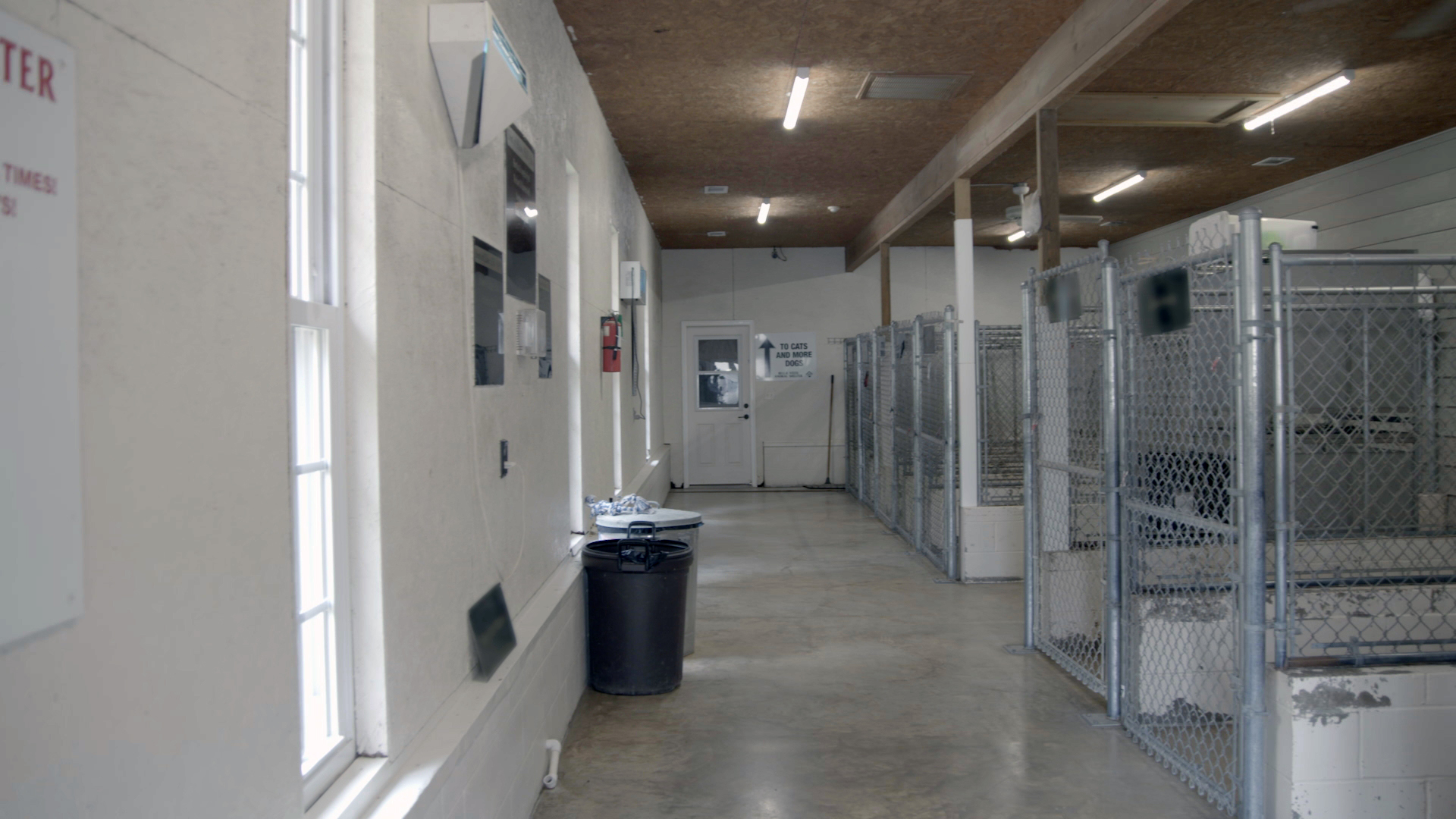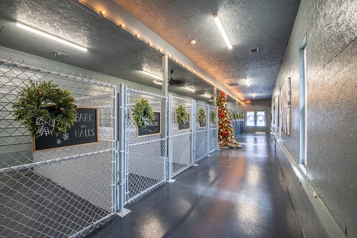 The dog kennel was large enough but needed a design to keep animals safe and secure. The short dividers on each dog stall made for some unsafe encounters. The solution we came up with was to build up the dividers and install plexiglass to fully separate the stalls high enough and allow separation so the dogs can’t be in direct contact or hurt one another. A chalkboard on each stall door provides information about the dog for workers and potential adopting families.