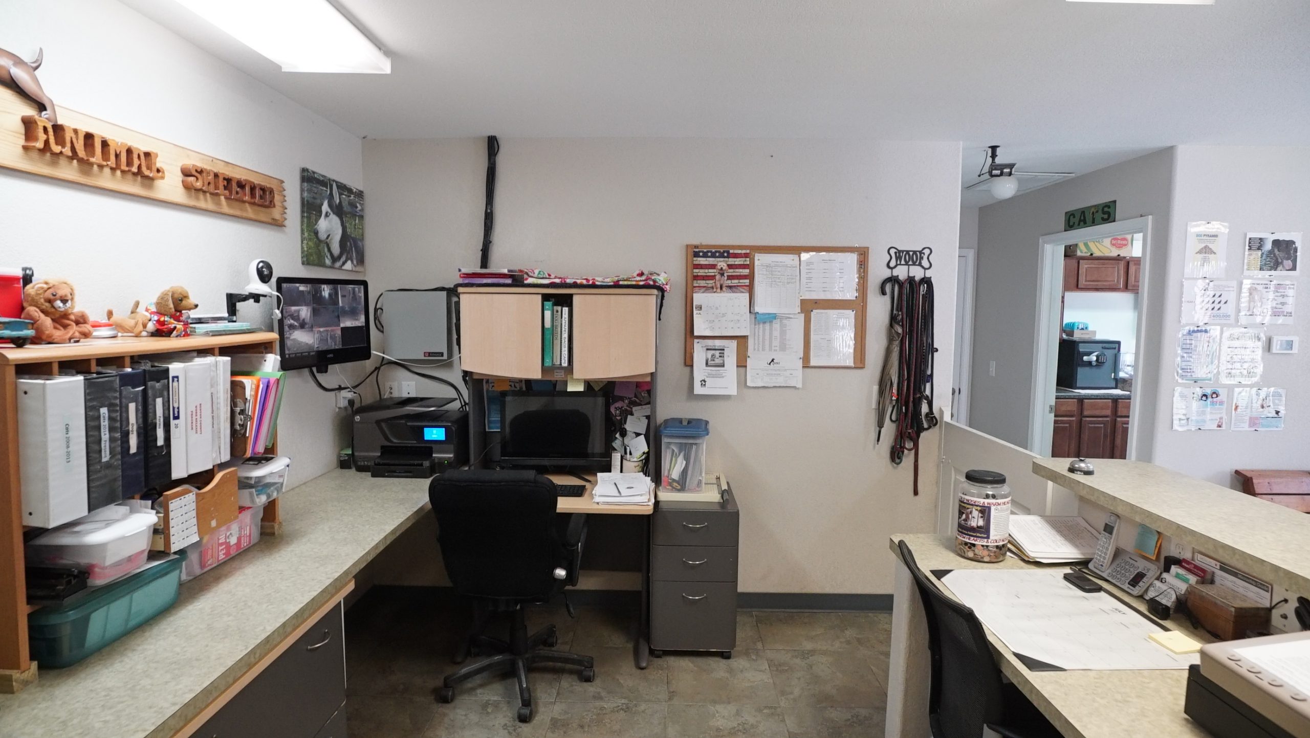 The reception area needed to be updated in order to become an organized, functional space. I also wanted to infuse it with warmth so that it will feel like an extension of home as potential families come in to find their new four-legged family member.