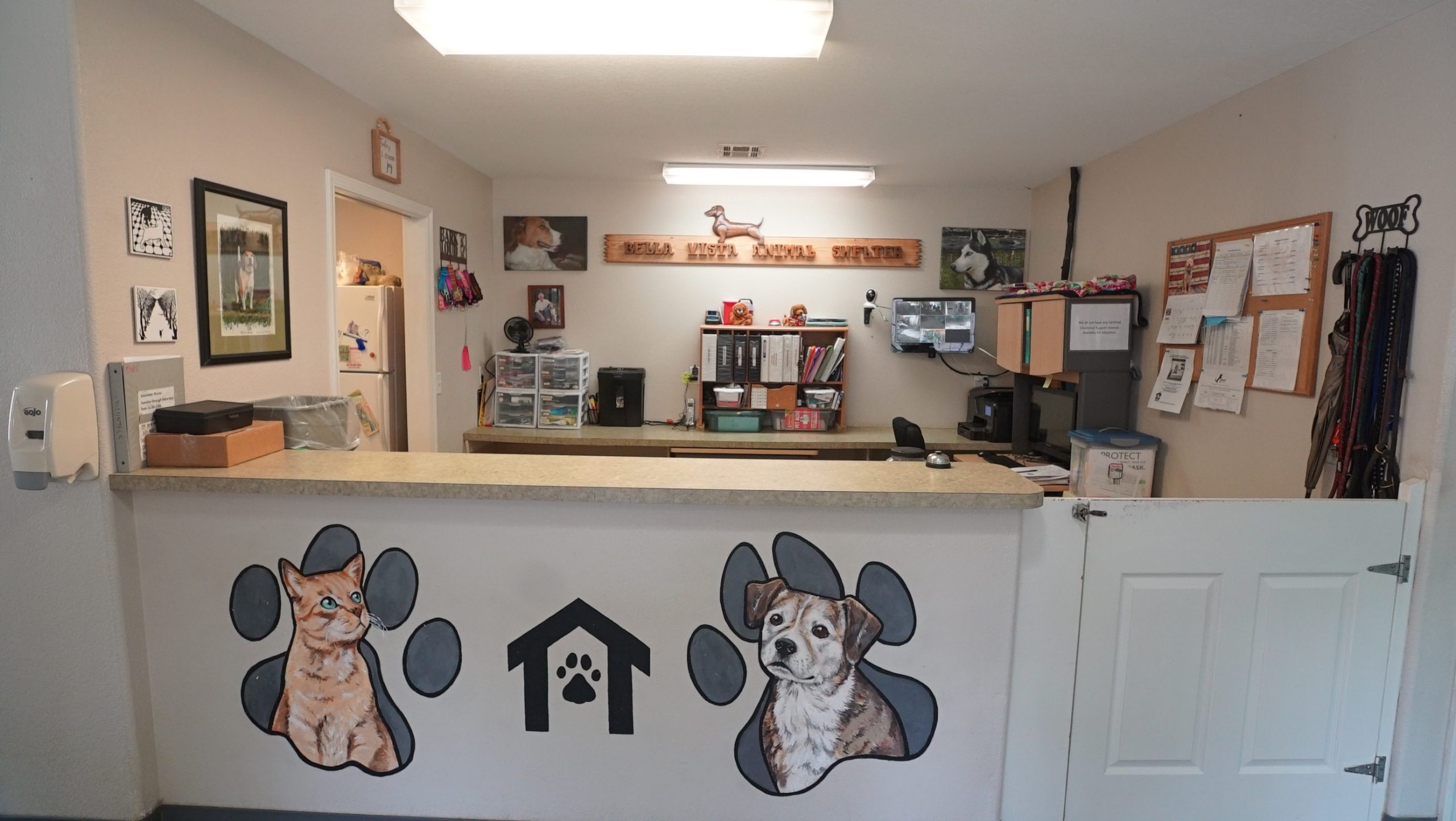 The shelter needed to extend a nice reception not just for pets, but potential adopting families. The building was old and neglected and the drab outside and inside wasn’t the best representation of how much the workers care for the dogs and cats. Nor did it offer a warm greeting for people coming to meet the animals.