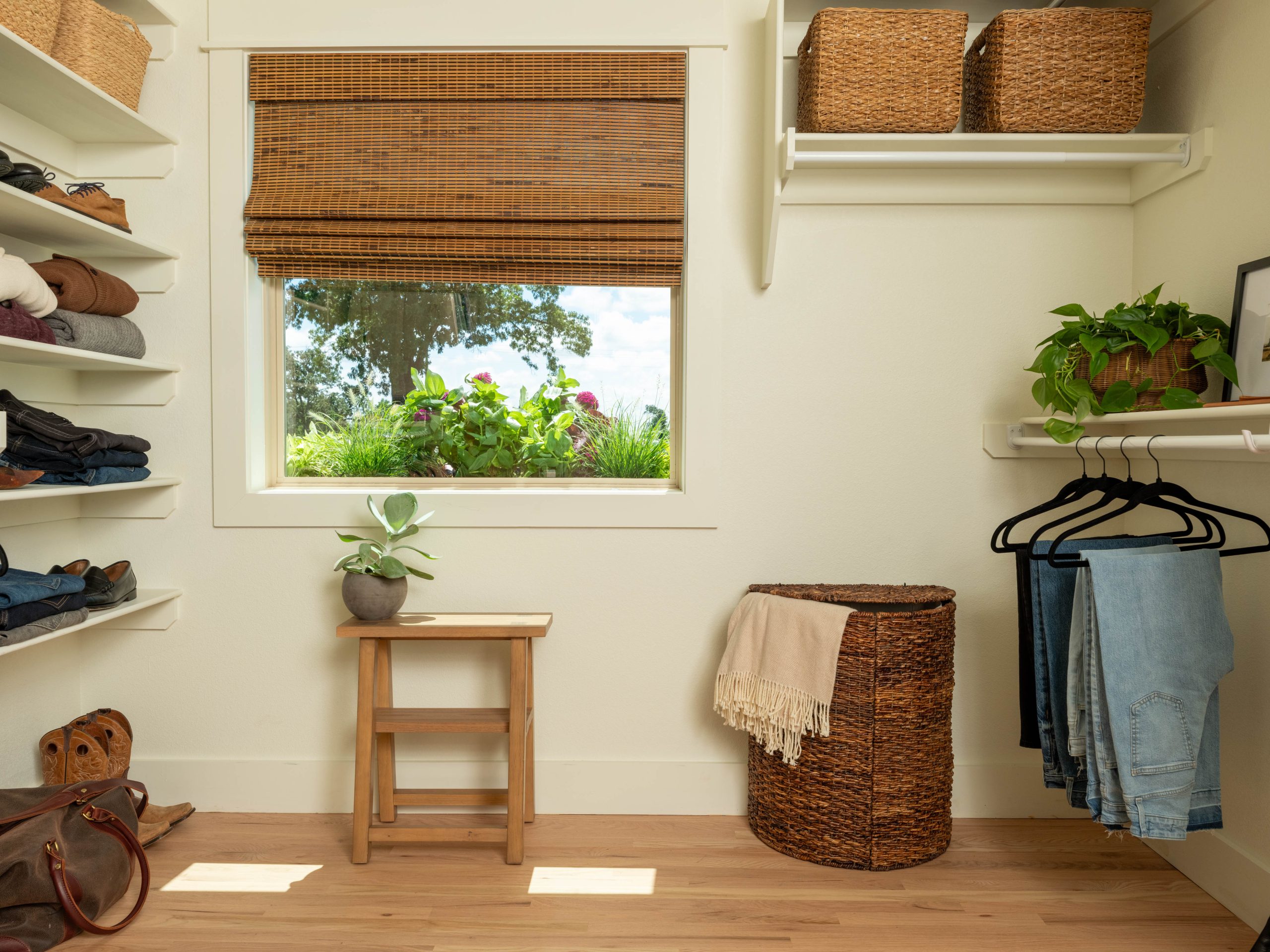 Since we had extra room, we built an amazing closet. It’s big enough to have its own Turkish rug, window, plenty of shelves and hanging space.