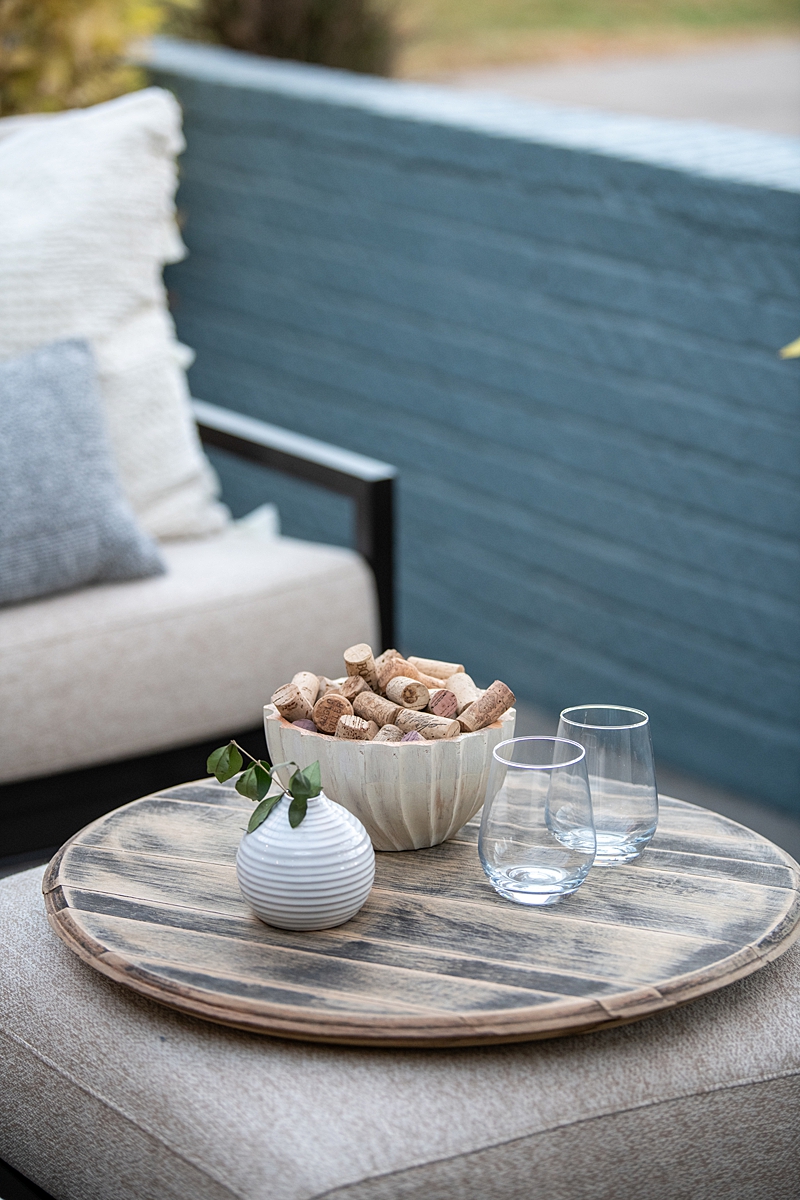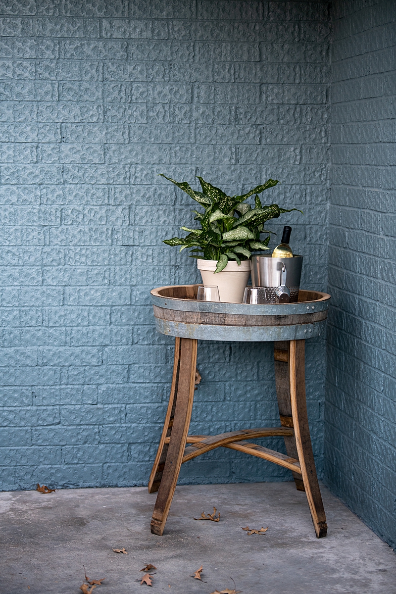 Alex and Cailin were married in Napa Valley and we wanted to incorporate that part of their story into their new home. Taking inspiration from wine country, we planted grapevines along the quaint courtyard area and Dave transformed a wine barrel into a table. Now, the courtyard is an inviting place to relax for a cocktail hour and host guests. This California-esque theme worked so well with the existing brick arches that lead to the front door. Dave and the guys welded an iron pergola over the courtyard to create a nice contrast with the brick and establish this interesting outdoor area as a gathering place.