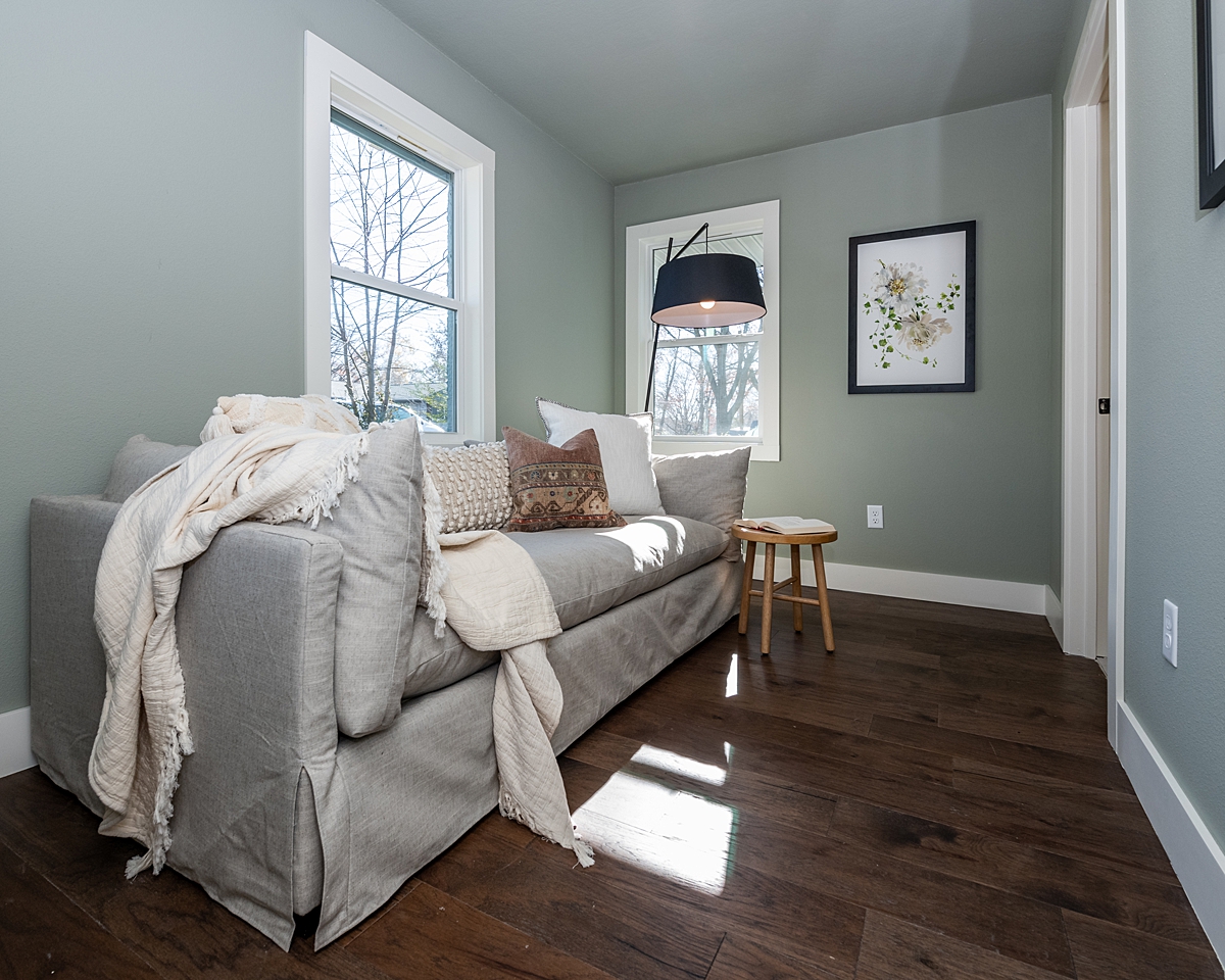Alex and Cailin wanted this to be a third bedroom, but also stay flexible enough to use as an office space. We added to the room on one side while pulling some space for the kitchen on the other. Now this is big enough to stand alone as its own bedroom! Additional window light and a closet allowed us to give the Goodyears a room they needed to function with a dual purpose.